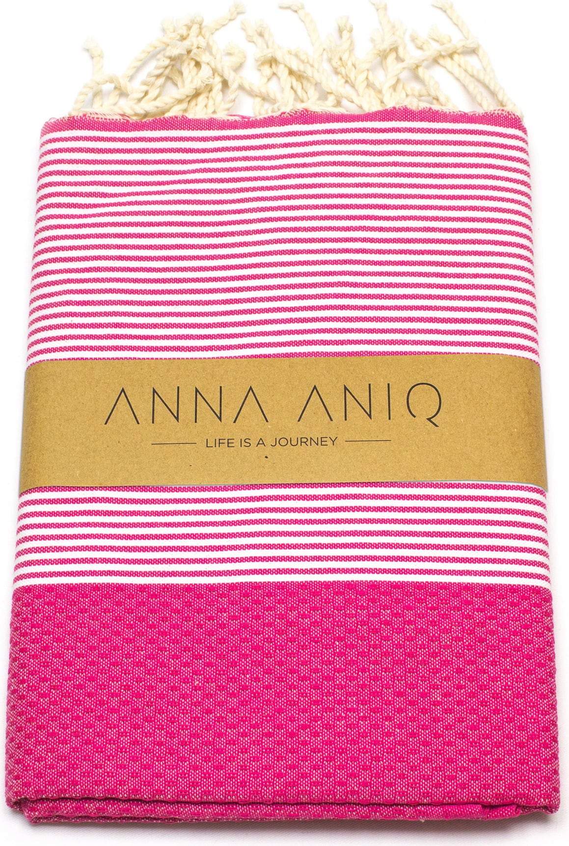Всяка кърпа е уникат, произведена при справедливи условия, с ръчно вързани ресни, които придават занаятчийски финес. Използването на 100% рециклиран памук допринася за устойчивост. Във всяка кърпа е втъкан етикет с жасминовия цвят – емблемата на ANNA ANIQ, разположен в центъра, за лесно закачане дори на най-малката кукичка, без кърпата да докосва пода!