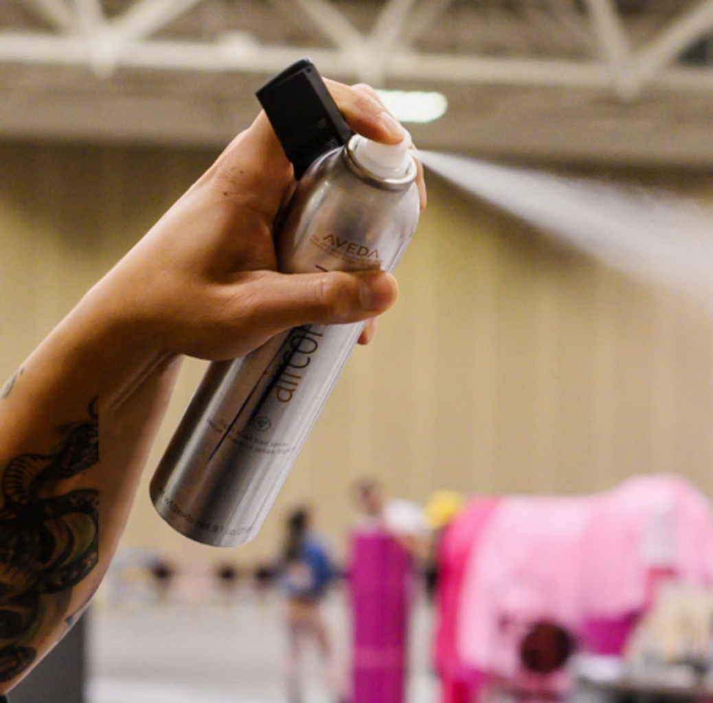 - Напръсквайте косата на разстояние 15-20 cm, като я държите далеч от очите, на кратки впръсквания.