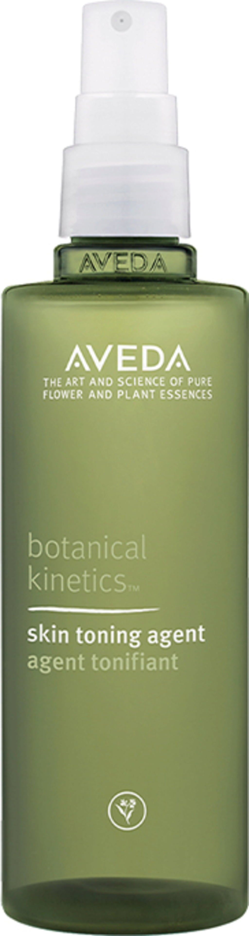 Botanical Kinetics™ Skin Toning Agent от Aveda освежава и хидратира кожата. Грижата осигурява розова вода и хиалуронова киселина, хидратант извлечен от захар. Богатият на хидратация спрей създава също охладителен и освежаващ ефект, подходящ за нормална до суха кожа. Ароматът от роза, немска лайка и евкалипт също обогатява сетивата.