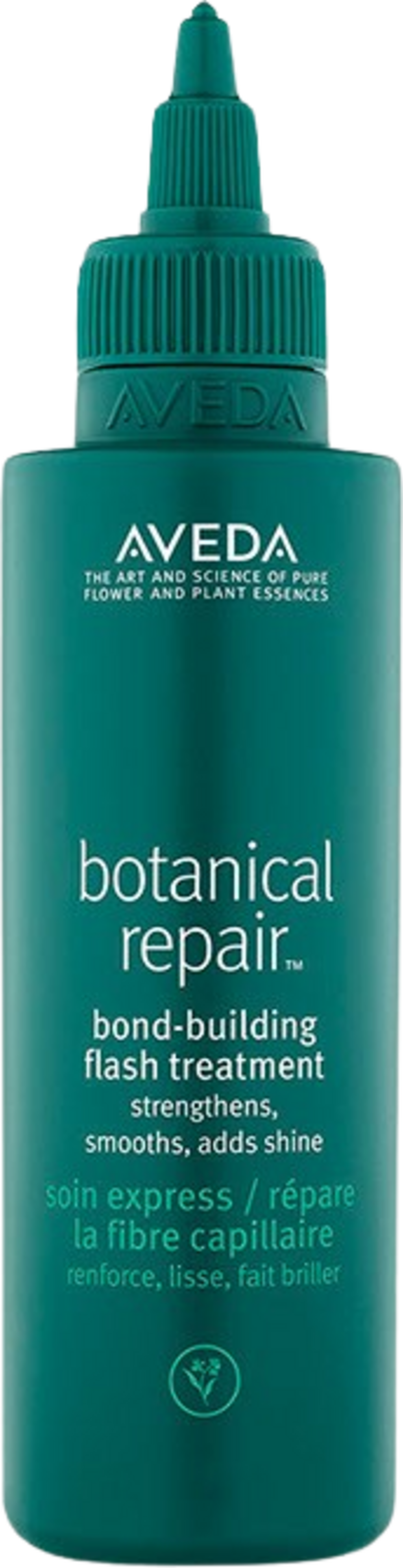 Botanical Repair™ Bond-Building Flash Treatment на Aveda придава на косата ти мигновено повече сила, гладкост и блясък и е идеалното допълнение след Botanical Repair™ Укрепващ шампоан и Botanical Repair™ Укрепващ балсам от Aveda. Формулата с веганска млечна киселина и ламеларна течнокристална технология образува лек воал на повърхността, който обновява увредените кутикули на косата. По този начин се създава защитен слой, който предпазва косата от външни влияния. Лечението осигурява и подхранващ ефект и гладко покритие.