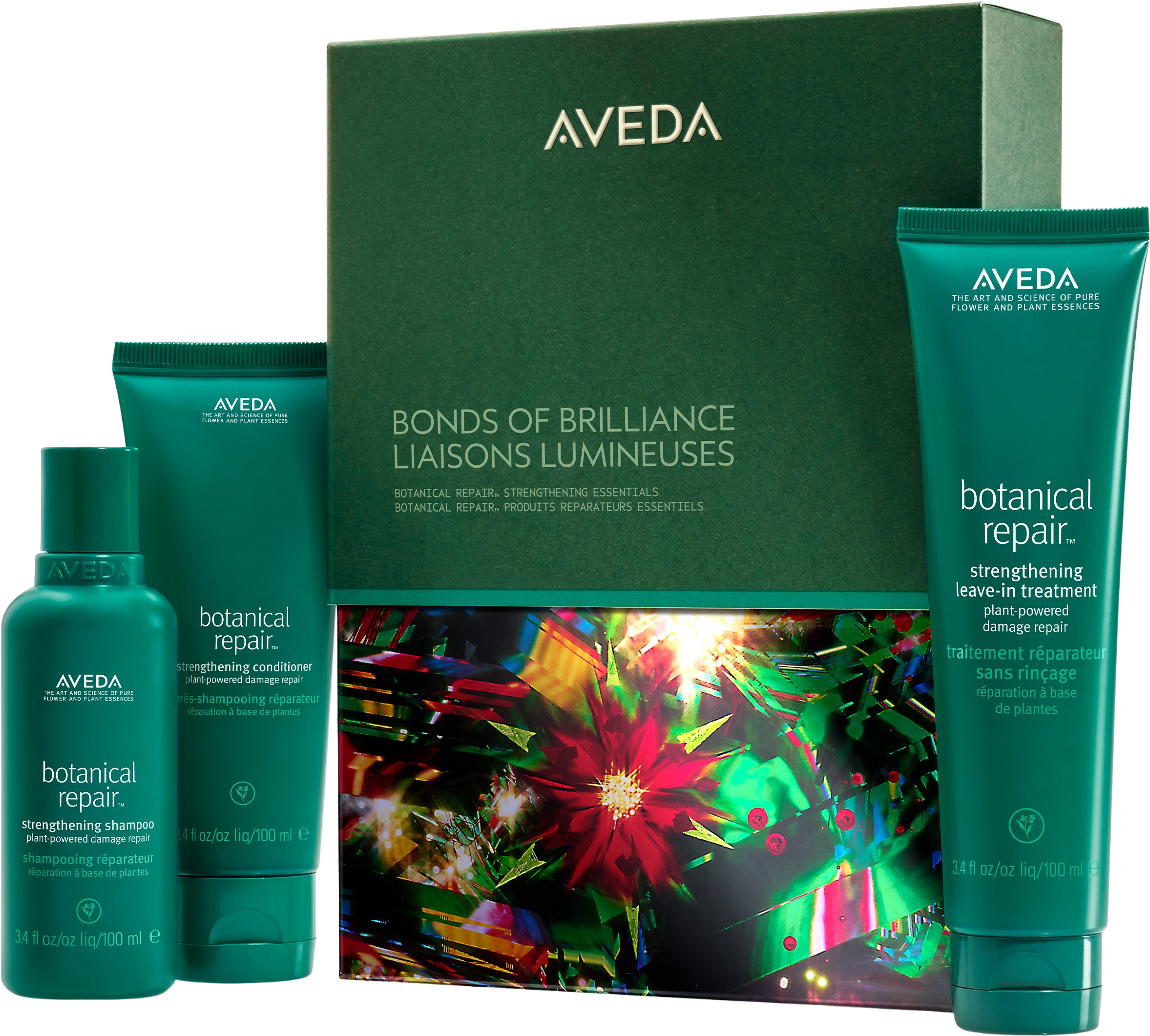 Лимитираният комплект Bonds of Brilliance от Aveda предоставя дълбока грижа за косата, укрепва я отвътре и й придава повече гладкост и блясък. Опакован в стилна, многократно използваема подаръчна кутия, комплектът е перфектна идея за подарък за всички, които искат да поглезят себе си или другите.