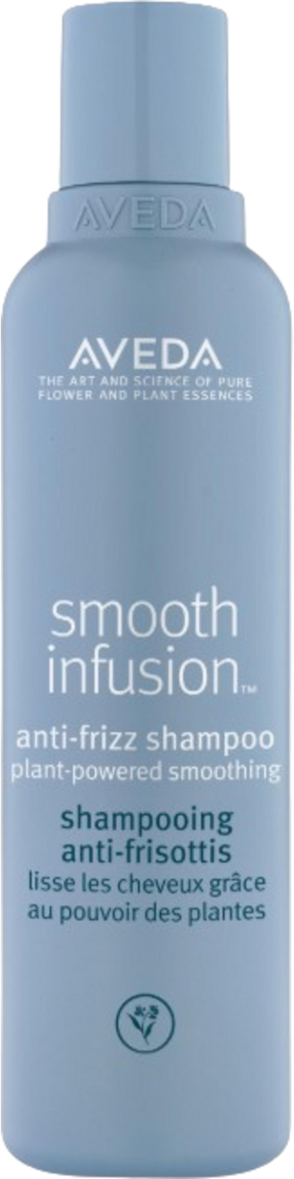 Smooth Infusion™ Anti-Frizz Shampoo от Aveda се грижи за дълготрайно гладка, мека и блестяща коса. Веган формулата с растителна сила нежно почиства, хидратира, укротява накъдрянето и обуздава хвърчащите коси. Допълнително, ценни растителни масла от масло от семена на Калахари и Таману масло подхранват кутикулата и придават на косата изключително мека текстура. По същото време, естествен комплекс от полимери обгръща всеки косъм за да отблъсква водата и заглажда повърхността.