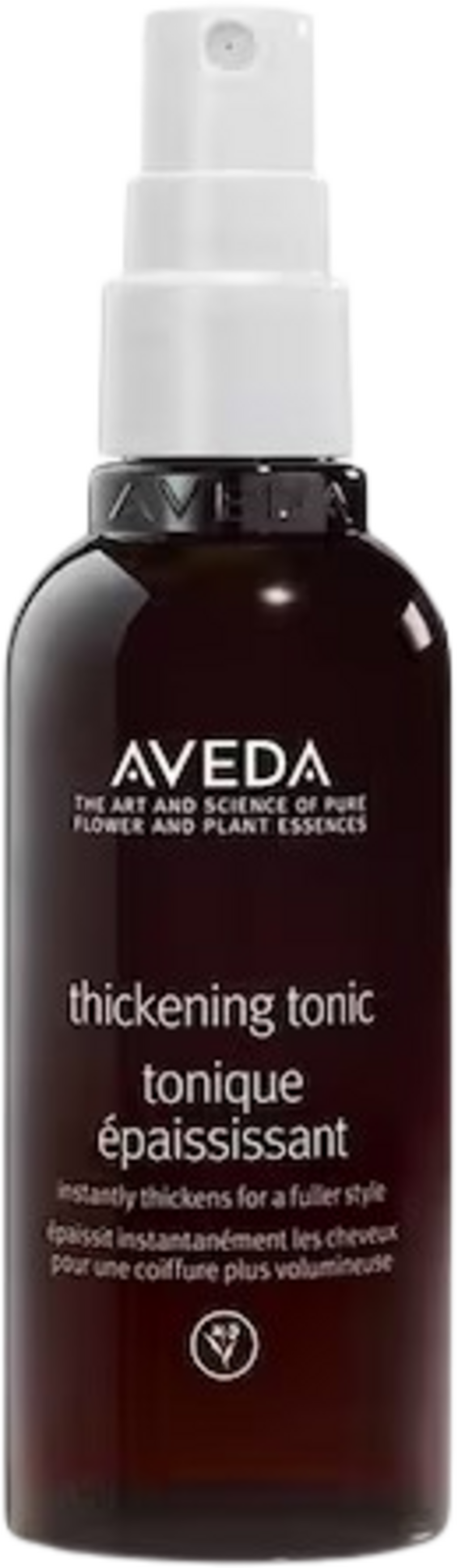 Тоникът за сгъстяване на косата от Aveda обгръща всеки тип коса със слой, който веднага прави по-фината коса да изглежда по-гъста. Освен това, с първото нанасяне на стилизиращия спрей, косата се укрепва. В центъра на иновативната формула с активни съставки, която е съставена от 97% натурални съставки, е амла. Аюрведичният плод, използван в Индия от векове за красива коса, благодарение на грижата прави косата по-здрава и обемна - от корена до върха.