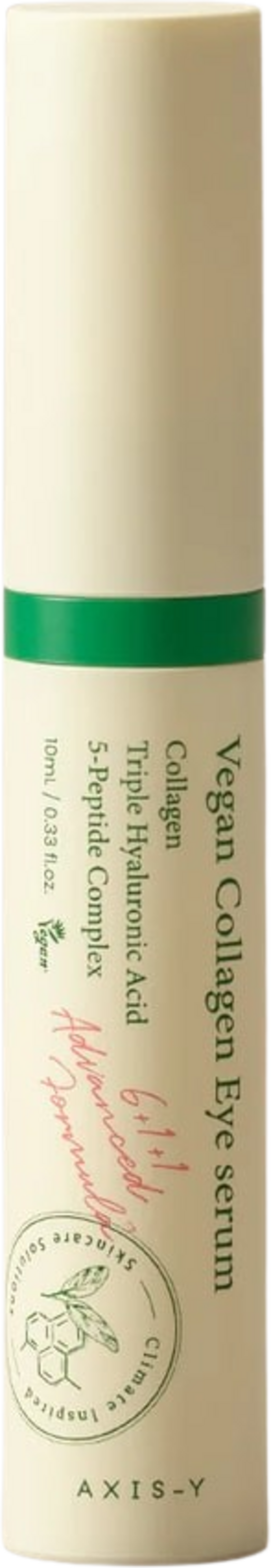 Веган серумът за очи с колаген от AXIS-Y не само се бори с фини линии и тъмни кръгове, но също така се отличава с изключително подхранваща и бързо абсорбираща се формула. Серумът за очи е идеален за тънката, чувствителна кожа около очите и осигурява дълбоко хидратиране. Формулировката с веган колаген се бори с бръчки и загуба на еластичност поради сухота. Тя е подкрепена от пет вида пептиди, три плодов екстракта, богати на витамин C и хиалуронова киселина, които осигуряват допълнително подхранване и изсветляване на кожата. Серумът притежава уникален апликатор Cool-Touch, който е специално проектиран за деликатна грижа за очите.
