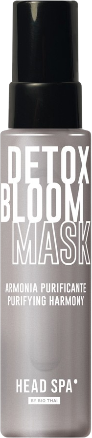 Маската Detox Bloom Mask на Bio Thai е специално разработена за нечист скалп или скалп, раздразнен от въздействието на околната среда, и премахва излишния себум и пърхота. Кремообразната ѝ и кадифена текстура нежно обгръща скалпа и възстановява баланса на кожата още с първото нанасяне. Зелената глина спомага за отстраняването на замърсяванията, излишния себум и остатъците от продукти за грижа и стилизиране. Растителният комплекс от лайка, слез, алое и валериана намалява дразненето на кожата, а маслата от сусам, перила, ориз и слънчоглед подхранват и защитават хидролипидния филм на скалпа. Формулата съдържа също растителен сквалан и смес от незаменими аминокиселини, които укрепват скалпа, подпомагат хидратацията и съживяват косата. При редовна употреба скалпът се успокоява, а косата възвръща блясъка и еластичността си.