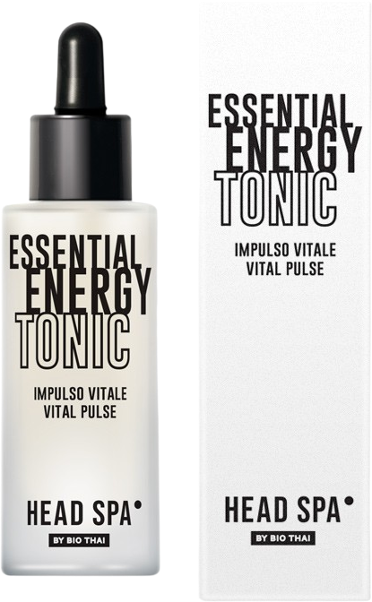 Essential Energy Tonic на Bio Thai предлага енергизираща грижа за скалпа и поддържа жизнеността на косата. Леката, ароматна формула действа като физиологичен стимулант, който нежно активира микроциркулацията, дава незабавно усещане за свежест и създава благоприятна среда за космените фоликули. Синергията от подбрани съставки действа в дълбочина, като укрепва физиологичните ресурси на скалпа. Бутеа суперба, конски кестен, дъб и коприва подпомагат снабдяването на корена на косъма с кислород и хранителни вещества. Възстановяващите екстракти от кемпферия, Phyllanthus emblica (амла), Terminalia chebula, Terminalia bellirica, Tribulus terrestris и Blumea balsamifera предпазват от оксидативен стрес, а богатият на антиоксиданти екстракт от Clitoria ternatea има укрепващо и защитно действие. Натуралните етерични масла допълват формулата, като придават баланс и засилват усещането за свежест.