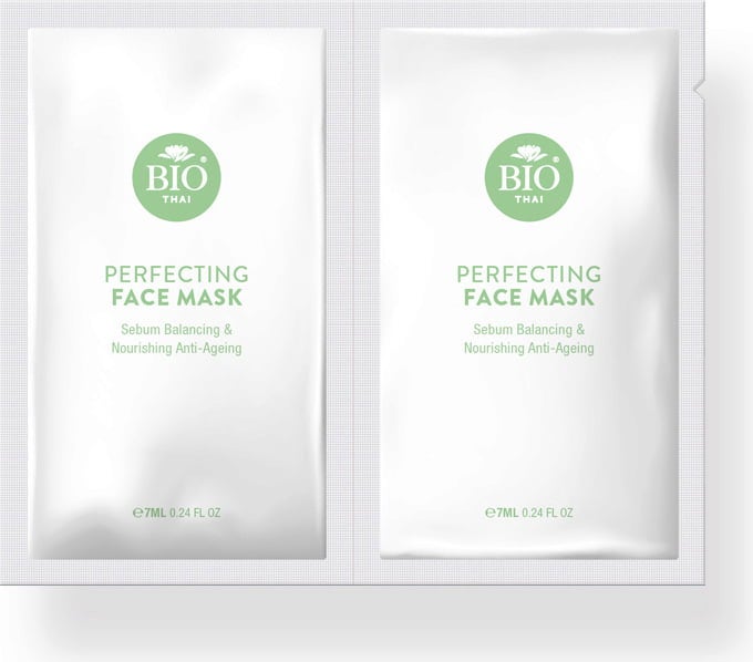 Bio Thai знае как да комбинира естествените суровини, така че те да имат устойчива и невероятна полза за нашата кожа. Така е при Perfecting маска за лице, която има много специален ефект благодарение на екстракти от водорасли, алое вера, соев протеин и женско биле. Комбинацията от тези съставки има реминерализиращ, стягащ и овлажняващ ефект. Но това не е всичко: формулировката също детоксикира кожата, като абсорбира нейните примеси и ѝ придава кадифен и сияен ефект.