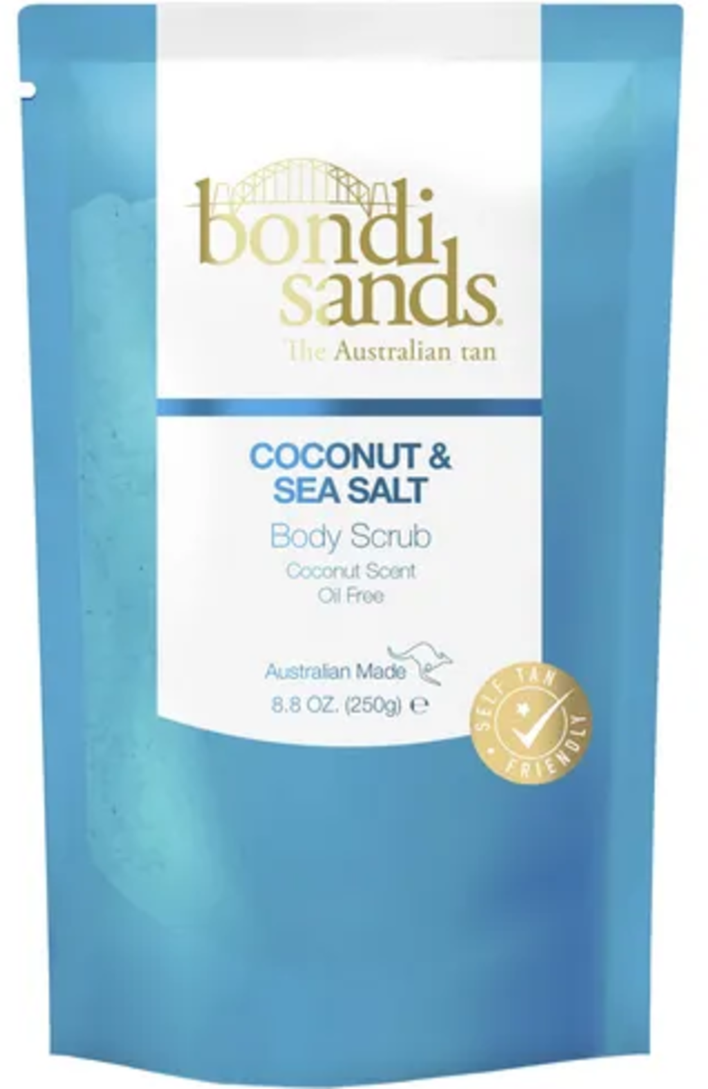 Скрабът за тяло Coconut & Sea Salt Body Scrub от Bondi Sands съдържа натурални ексфолиращи вещества като австралийски пясък и морска сол, които нежно отстраняват мъртвите клетки на кожата. Обвивки от кокосов и орехов черупки премахват замърсяванията и правят кожата мека, гладка и свободна от мазни остатъци. Така порите остават незапушени и кожата ви е перфектно подготвена за нанасяне на автобронзант. Скрабът има възхитителен аромат на печен кокос.