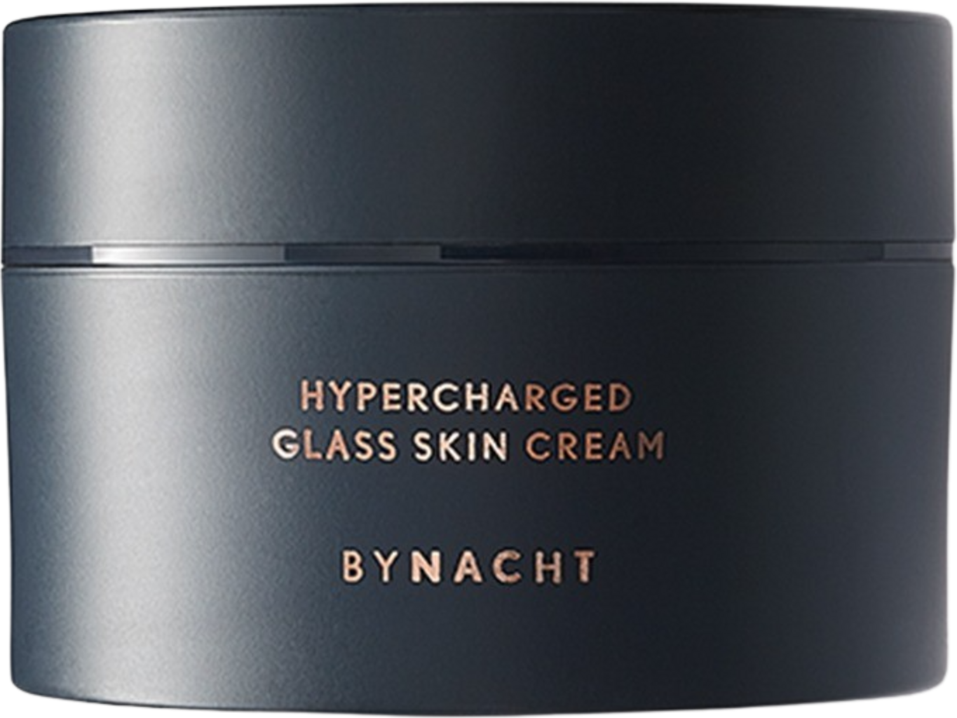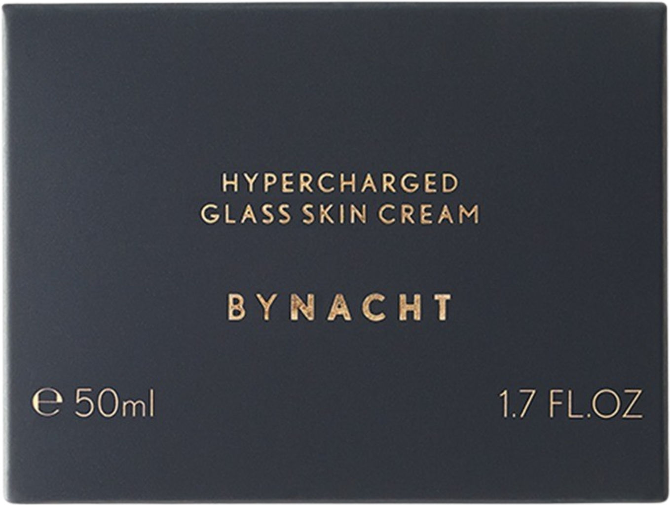 Хиперзареденият крем за стъклена кожа от BYNACHT® разполага с многофункционална формула, която усъвършенства текстурата на кожата, предлага антиейджинг ефект и същевременно възстановява бариерния слой. За целта кремът съдържа патентован комплекс, който комбинира осем различни хиалуронови производни с млечни бактерии (Lactobacillus Pentosus) и китайска шлемница. Те работят в синергия, за да възстановят кожната бариера и нейния микробиом и ефективно да се борят с признаците на стареенето на кожата. Резултатът е гладък, сияен тен - още от рано сутрин!
