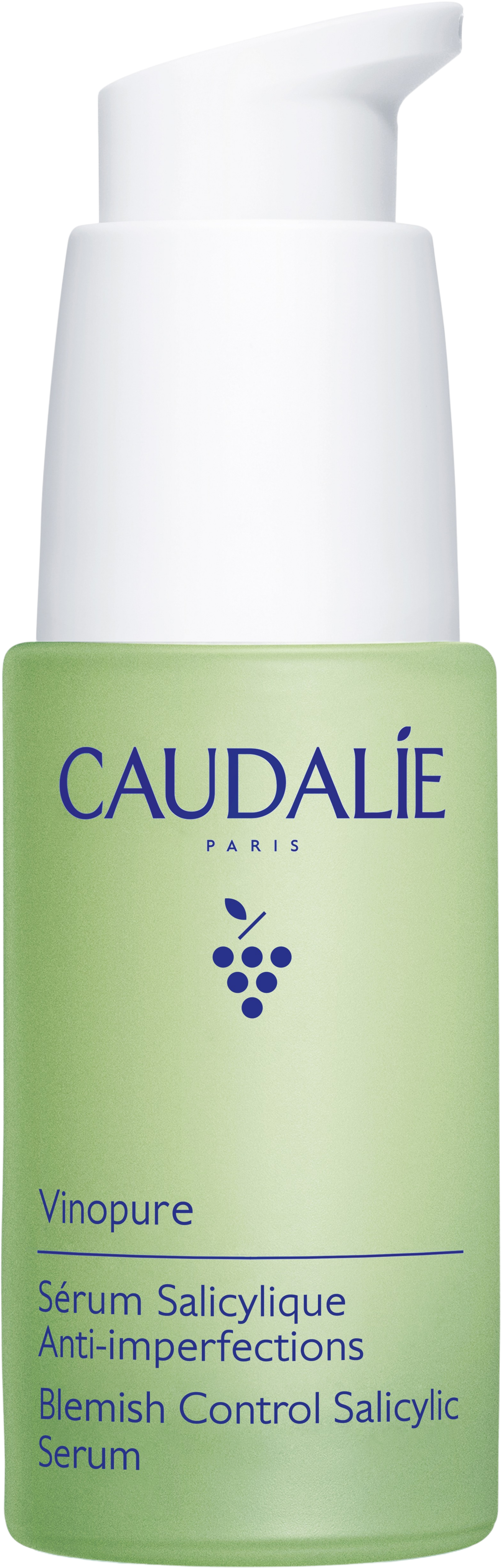 Vinopure Blemish Control Salicylic Serum на Caudalie се бори с петната, свива порите и матира тена, без да уврежда кожната бариера. Лекият, течен гел-серум се абсорбира бързо и веднага започва видимо да подобрява качеството на кожата. Формулата се основава на избистряща салицилова киселина, ниацинамид, PHA, антиоксиданти от полифеноли от гроздови семена и шест етерични масла, които допълнително подпомагат пречистващия ефект.