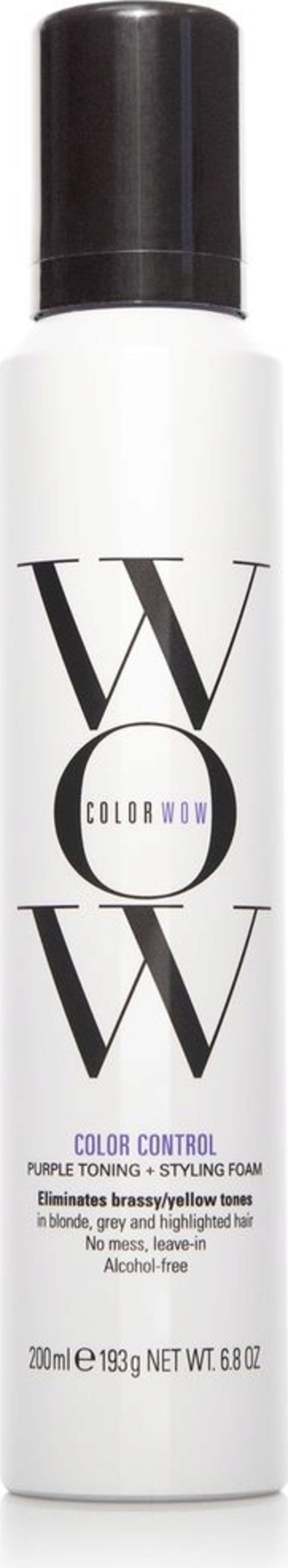 Цветово контролираща лилава пяна за тониране и стилизиране - руса коса на Color Wow е леко пигментирана стилизираща пяна, която помага за премахване на нежелани жълти или златни оттенъци при руса, бяла, сива или изсветлена коса. Светлият лавандулов цвят неутрализира топлите тонове.