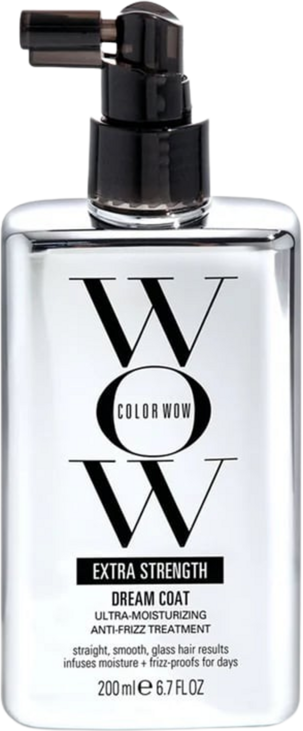 Dream Coat Extra Strength на Color WOW е тайната за мечтано гладка и мека коса! Наградената формула блокира външната влажност и в същото време запазва необходимата влага в косата. Така визията ти остава перфектна през целия ден – независимо дали имаш естествено къдрава или бухнала коса. Ултралек спрей, който създава копринени стилове без хвърчащи кичури, които не се връщат към естествената си текстура. Формулата, активирана от топлина, интензивно грижи за косата и я защитава от топлинни увреждания, докато едновременно придава почти безтегловно усещане. Само с едно нанасяне постигаш дълготрайни резултати за гладка и мека коса. Иновативната, изключително силна анти-фриз технология дори запълва вътрешната влага на изключително суха, крехка коса. Благодарение на ултра силни, гъвкаво-еластични полимери, кутикулният слой се запечатва, така че косата ти остава копринено гладка — без да жертва стабилността.