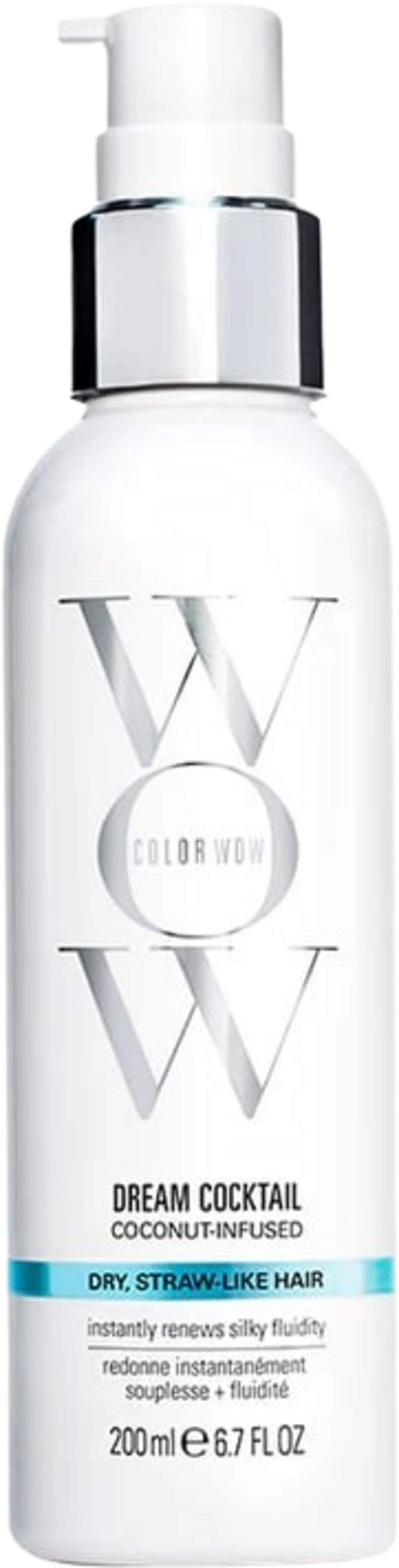 Dream Cocktail Coconut от Color WOW предлага комплекс от 18-MEA и кокосово масло, който имитира и възстановява изгубената липидна обвивка вследствие на боядисване и топлинни процедури. Тази обвивка е необходима за задържане на влагата и поддържане на кутикулата гладка и стегната. Тази грижа се противопоставя на всички тези проблеми и възстановява блясъка, подвижността и живостта на косата.