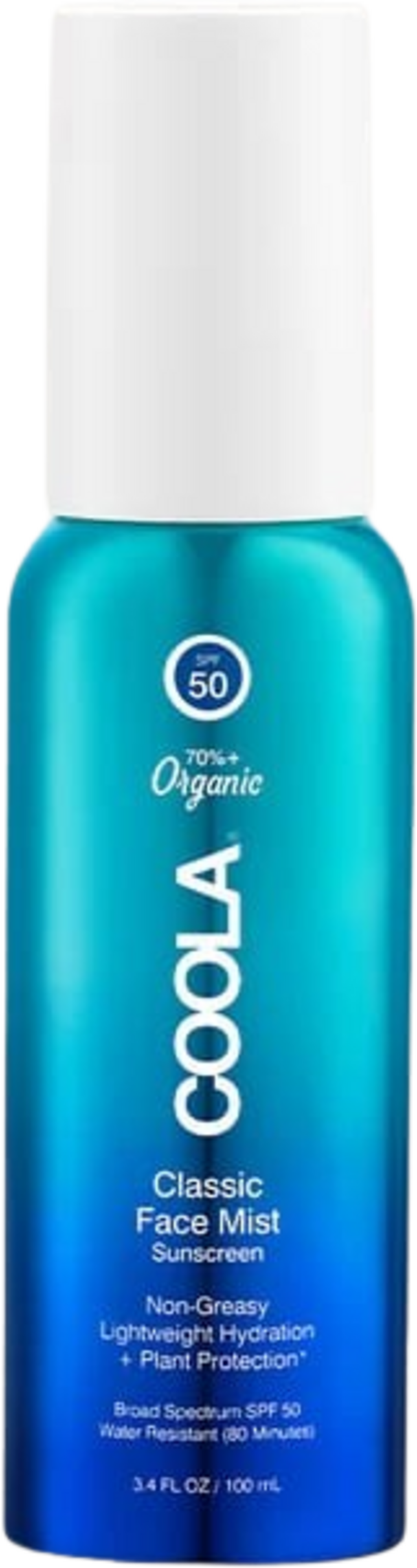 Classic Face Mist SPF 50 от COOLA е лесен за нанасяне, лек слънцезащитен продукт, който се поставя за секунди. Ненатрапващият се спрей образува чист финал и е базиран на богат на антиоксиданти Plant Protection® комплекс, съдържащ екстракт от кактусова смокиня, масло от малинови семена и масло от бурити. Те се борят със свободните радикали и придават на кожата допълнителна грижа. Спреят е подходящ за ежедневна употреба и за дълги, активни дни под слънцето. Може да се използва също върху грим и е особено удобен за защита и освежаване в движение.