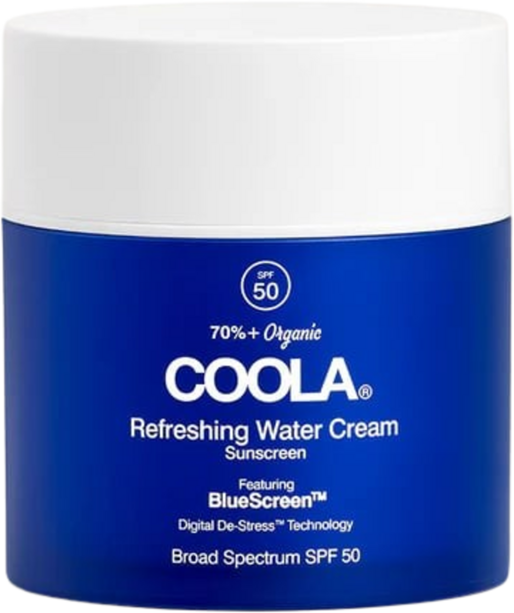 Освежаващия крем с вода SPF 50 от COOLA е обогатен с хидратираща хиалуронова киселина и освежаваща кокосова вода, предоставяйки голямо количество влага, която се задържа дълго време. Кремът предлага и мощна UV защита, като благодарение на растителния комплекс Full Spectrum 360° защитава от вредите от синя светлина от дигитални устройства, инфрачервена светлина и замърсяване на околната среда. Така кожата намира своето спокойствие и по-добре се регенерира.