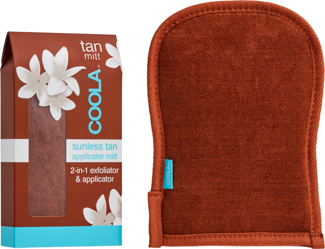 Ръкавица за нанасяне на тен без слънце от COOLA предлага перфектна 2-в-1 комбинация: Грубата страна на ръкавицата е идеална за ексфолиране, докато по-меката страна е подходяща за нанасяне на вашия автобронзант.
