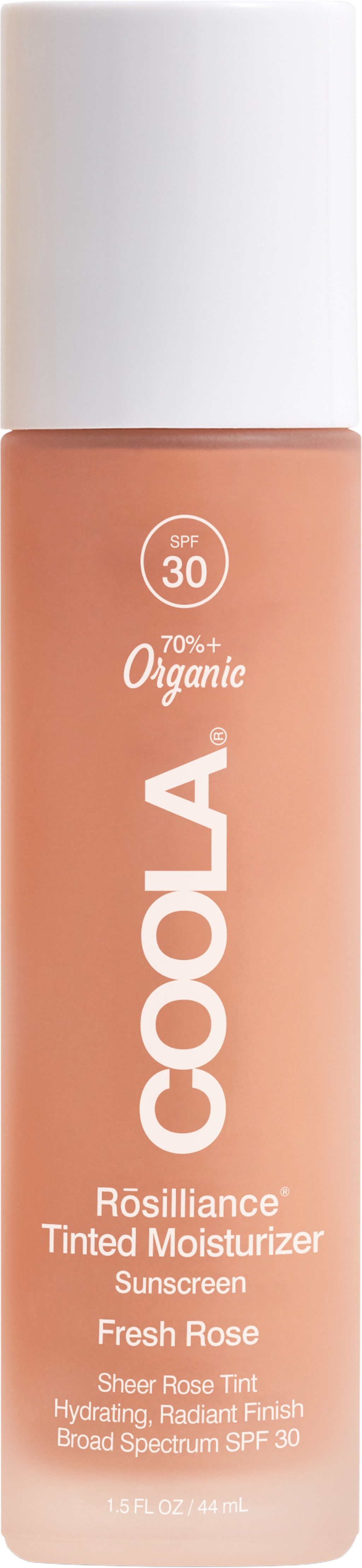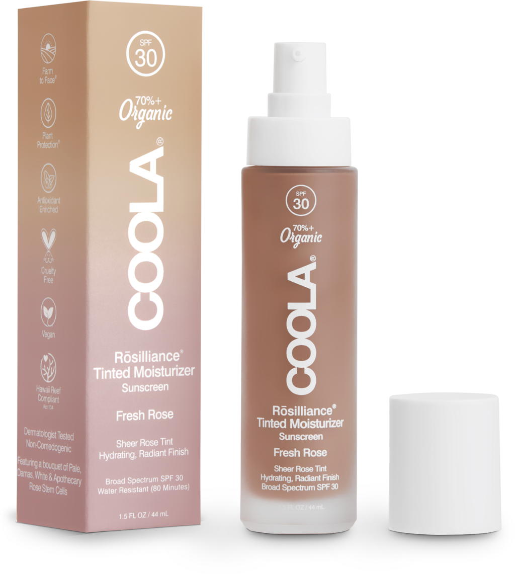 Rosilliance® тониран овлажнител SPF 30 от COOLA е тониран, балансиращ овлажнител, който засилва естествения блясък на тена и поддържа свеж и добре поддържан вид на кожата. Ултралеката минерална UV широкоспектърна формула с фактор 30 дава усещане, че едва се усеща върху кожата, докато придава лек оттенък и съвършен цвят на тена. Съдържащите се стволови клетки от роза предлагат усъвършенстван биокомплекс, който изглажда кожата, осигурява хидратация и подобрява видимите признаци на стареене. Освен това, устойчивостта на кожата се увеличава, като тя остава добре защитена, мека и сияеща.