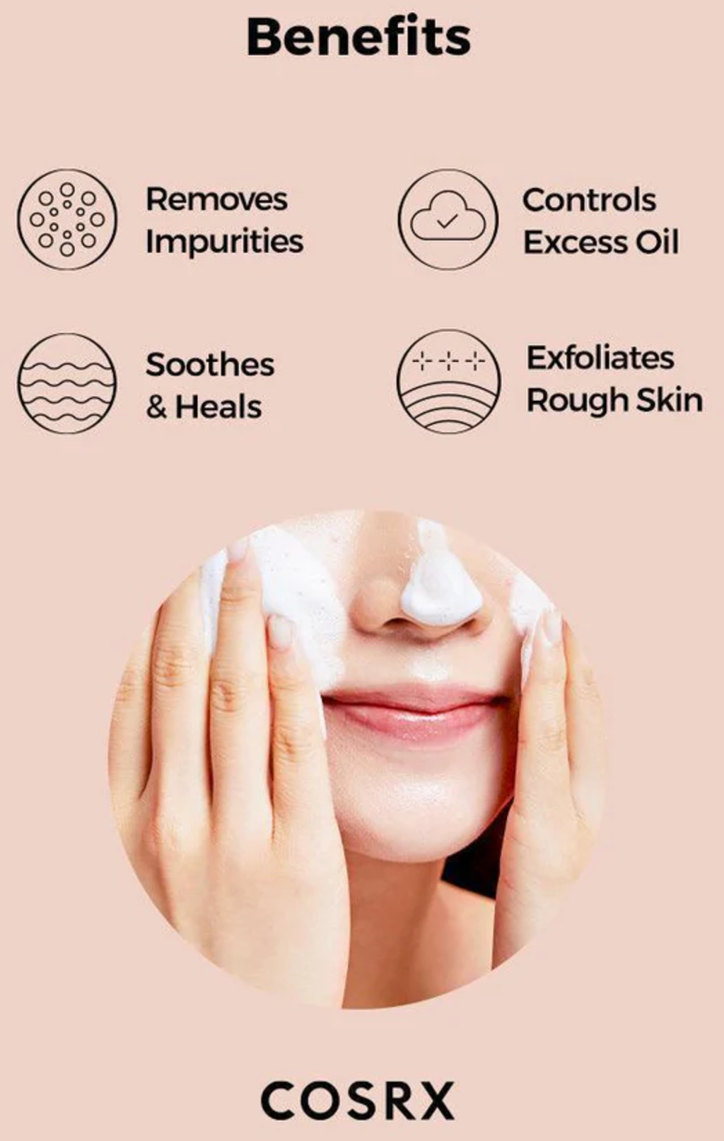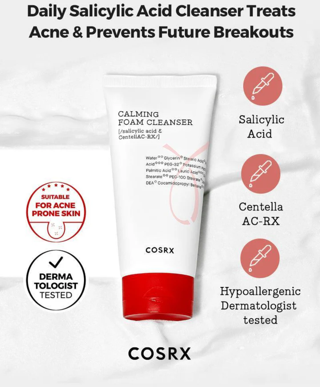 Успокояващата пяна за почистване от Cosrx е идеална за проблемни и мазни типове кожа, тъй като почиства всички замърсявания, дори дълбоко вградени черни точки, и контролира излишното омазняване. Формулата е изключително щадяща за кожата и осигурява освежаваща хидратация.