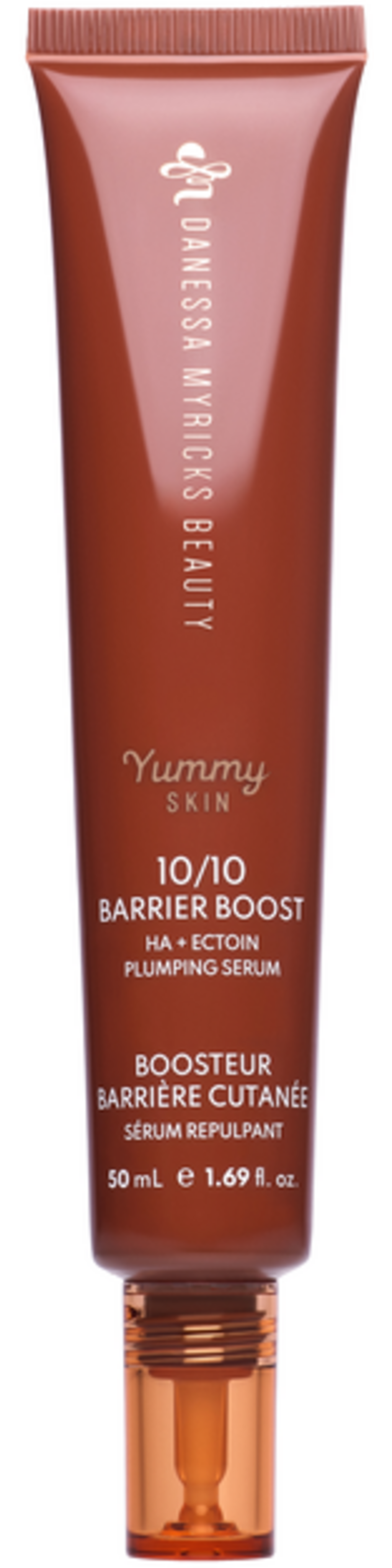 Yummy Skin 10/10 Barrier Boost от Danessa Myricks е високоефективен, млечен гел-серум, който интензивно хидратира кожата и укрепва влагозадържащата ѝ бариера благодарение на комбинацията от хиалуронова киселина с десет различни молекулни тегла, осигуряваща незабавен и дълготраен ефект. Леката, изглаждаща и придаваща плътност грижа с ектоин също така защитава кожата и възстановява нейния естествен баланс. Освен това серумът е идеален като първа стъпка от вашата грижа за кожата и осигурява перфектна основа преди нанасяне на грим.