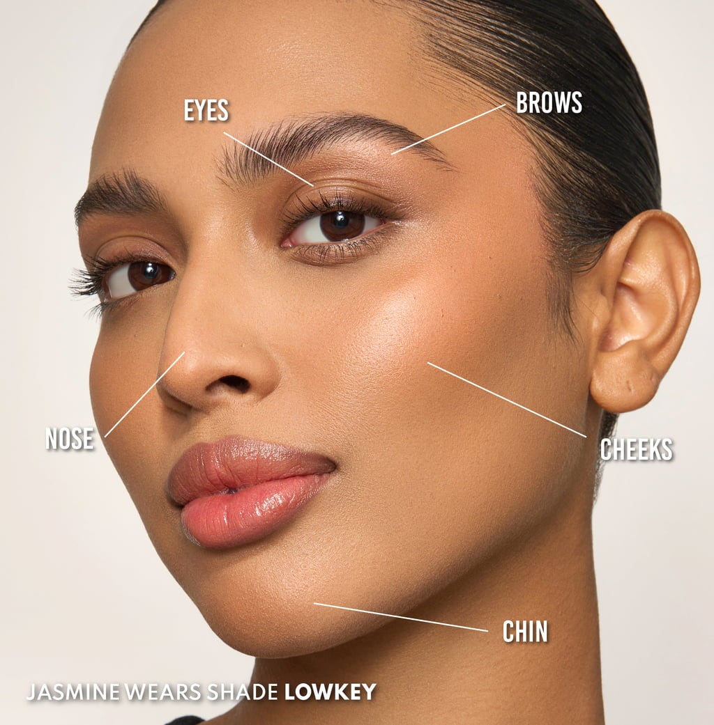 - Можеш да нанесеш Lowlighter-а с пръсти или четка върху скулите, костта под веждите, носа и устните, след което да го разнесеш.