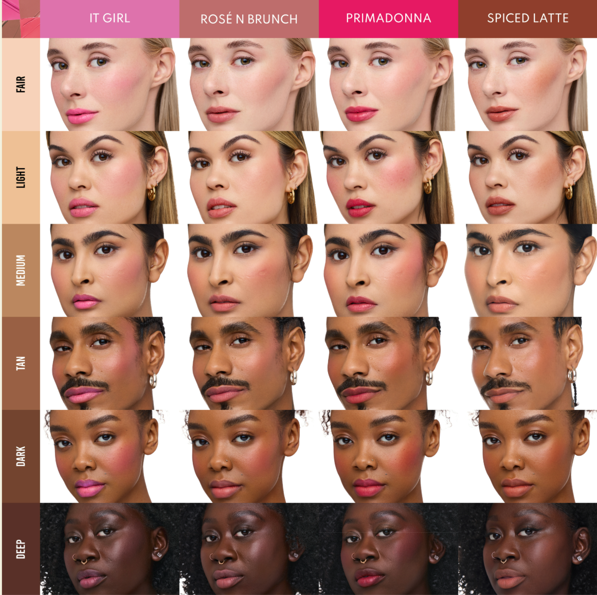 - Yummy Skin Blurring Balm Powder Flushed: Пудра за руж с променлива, наслояваща се покривност.