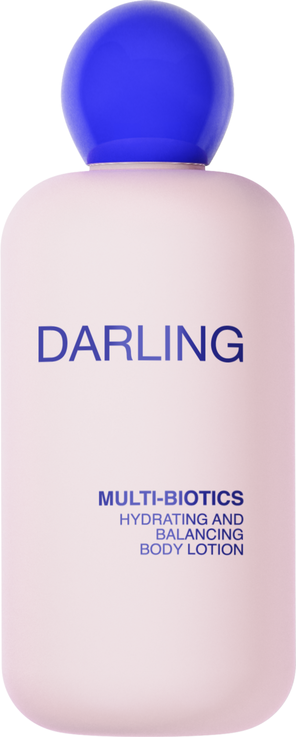 Multi-Biotics Хидратиращ и Балансиращ Лосион за Тяло от DARLING съдържа комплекс от пребиотици и пробиотици, който укрепва кожната бариера, предотвратява загубата на влага и възстановява баланса на кожния микробиом. Богатото масло от шеа и масло от жожоба подхранват кожата в дълбочина, докато антиоксидантният кофеин и витамин С предпазват от свободните радикали. Така външният вид на сухата, сива кожа отново става гладък, кадифен и сияещ. Ароматът на бели цветя, комбиниран с топлината на амбра и кашмирово дърво, прави всяко нанасяне истински момент на релаксация.