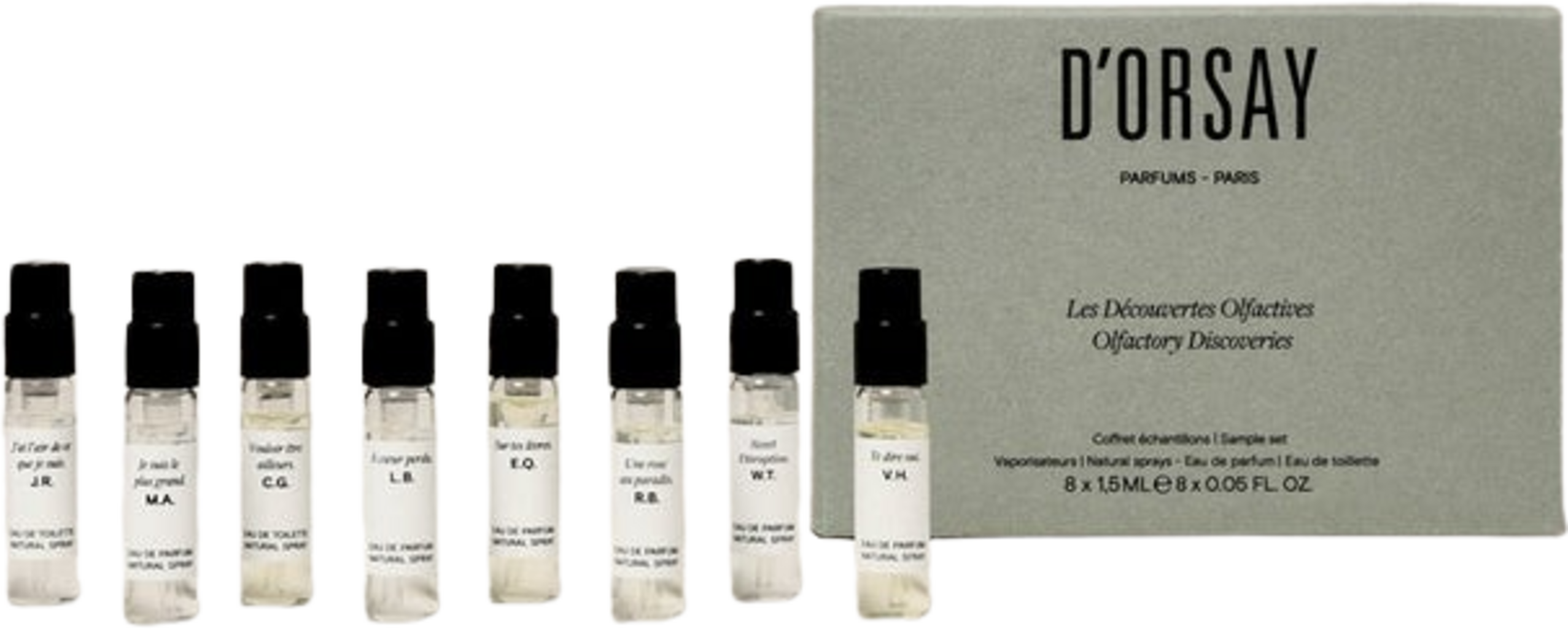 Ексклузивният Discovery комплект от D'Orsay ви позволява да откриете света на изисканата парфюмерия в малки, ароматни стъпки. Той съдържа 8 унисекс ароматни мостри по 1,5 ml, които представят различни олфакторни фасети – от дървесни през флорални до цитрусови и пикантни – и осигуряват разнообразни ароматни изживявания.