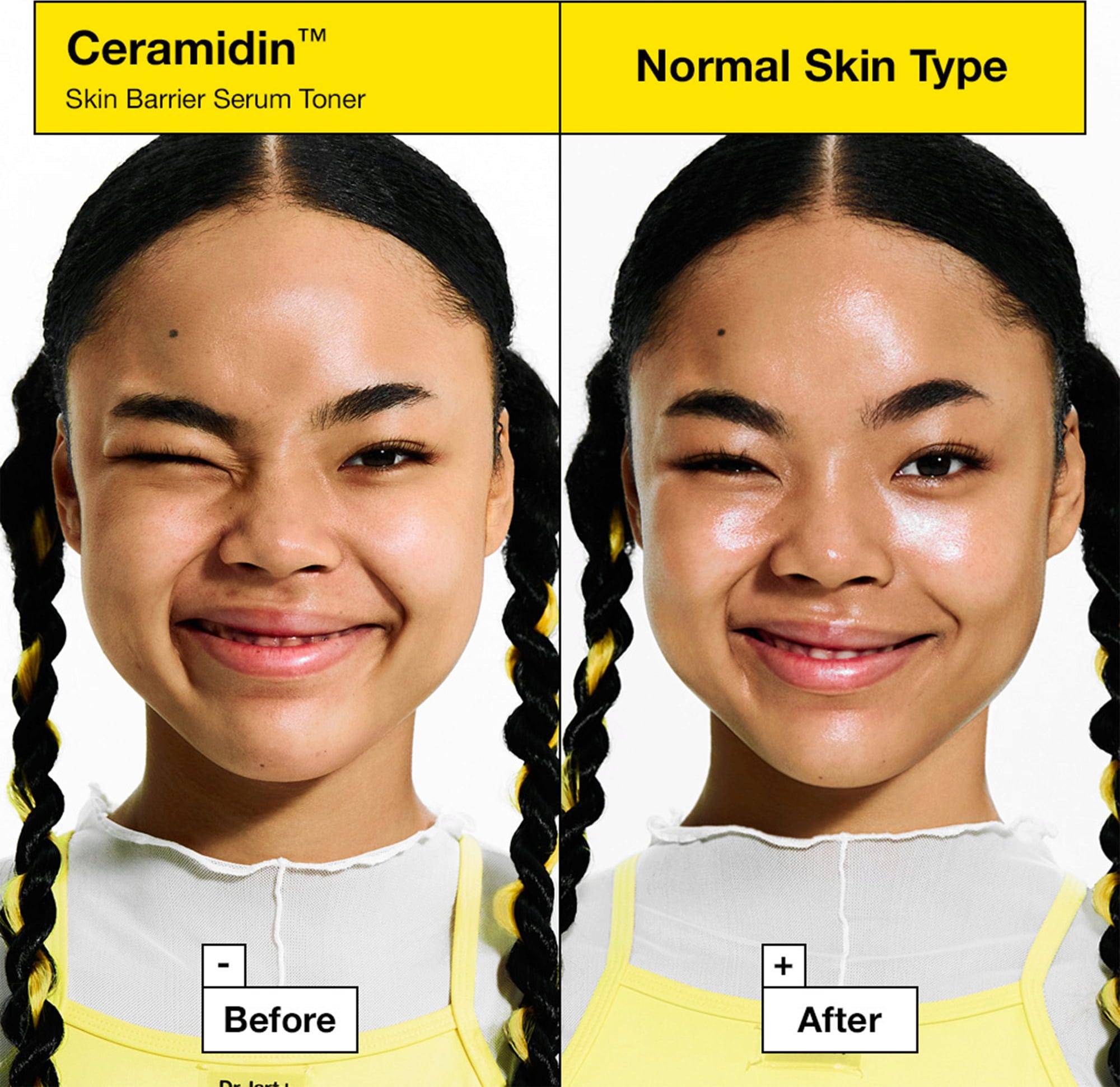 Ceramidin™ Skin Barrier Serum Toner от Dr. Jart+ комбинира свойствата на тоник и серум. Формулата с пантенол и церамиди укрепва защитната бариера на кожата, осигурява подходящо ниво на хидратация и придава еластичност на кожата. Глицеринът ви дава допълнителен свеж тонус. Тоникът също така подготвя кожата за следващите етапи от вашата грижа.