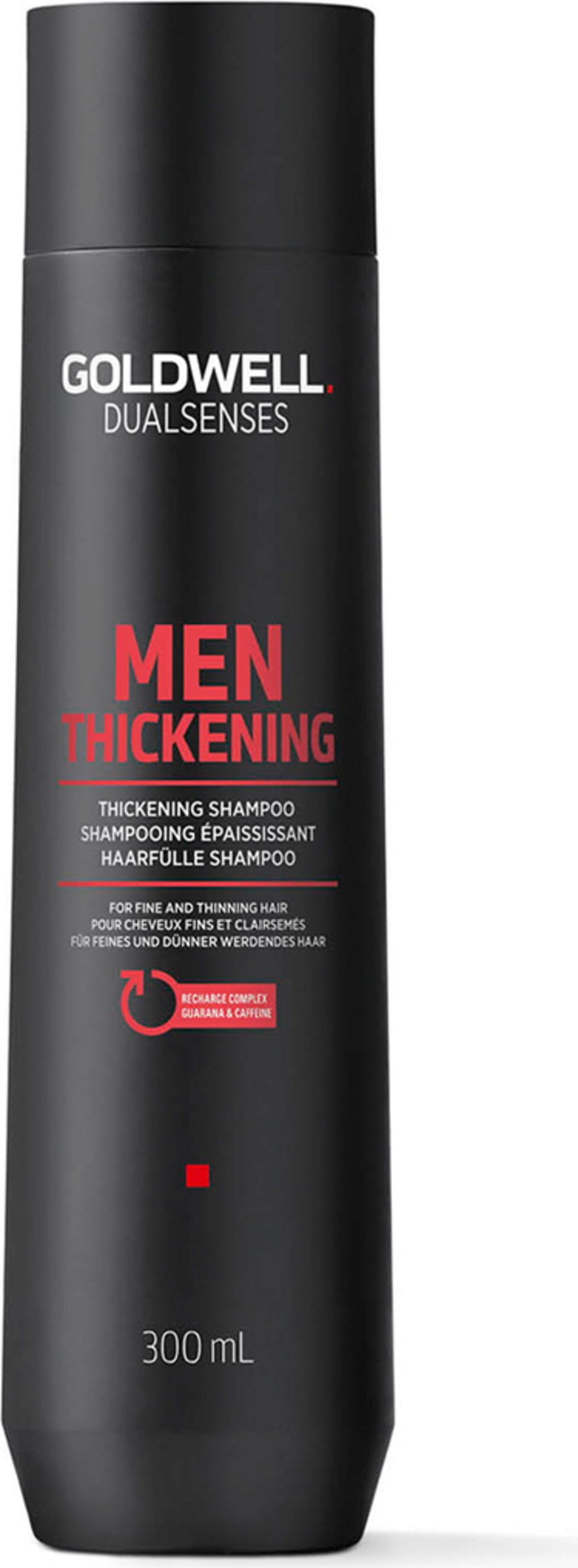 Dualsenses Men Thickening Shampoo от Goldwell е укрепващ шампоан, който зарежда с енергия тънката и изтъняваща мъжка коса. Освен че почиства, той укрепва косата и я прави по-устойчива. Така можете да се насладите на усещането за по-плътна коса.
