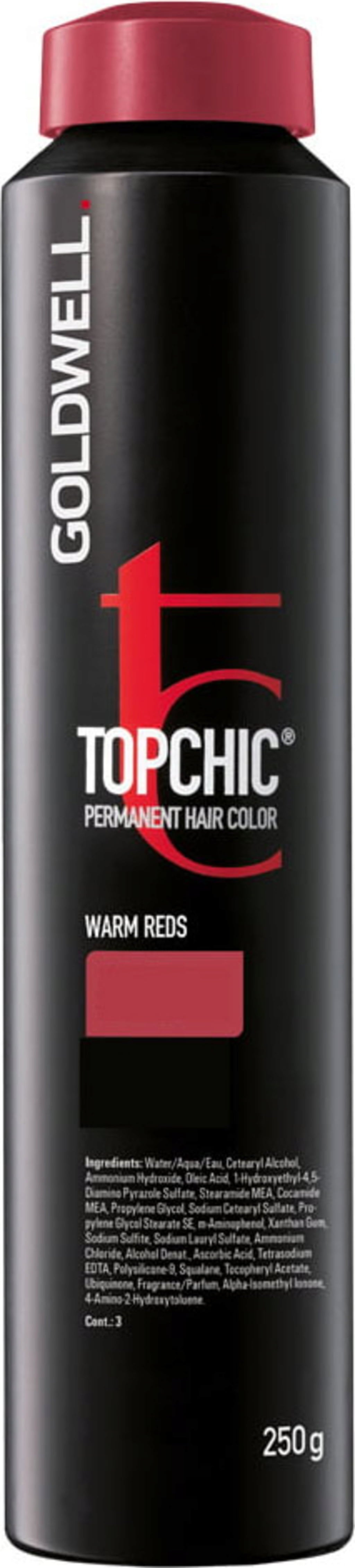 Topchic Permanent Hair Color Warm Reds Dose от GOLDWELL ви предлага вълнуващи топли червени нюанси, изпълнени с жизненост и сияние, които ви дават възможност да разгърнете креативността си. Интелигентната технология ви подкрепя в постигането на несравними цветови резултати в блестящи измерения.