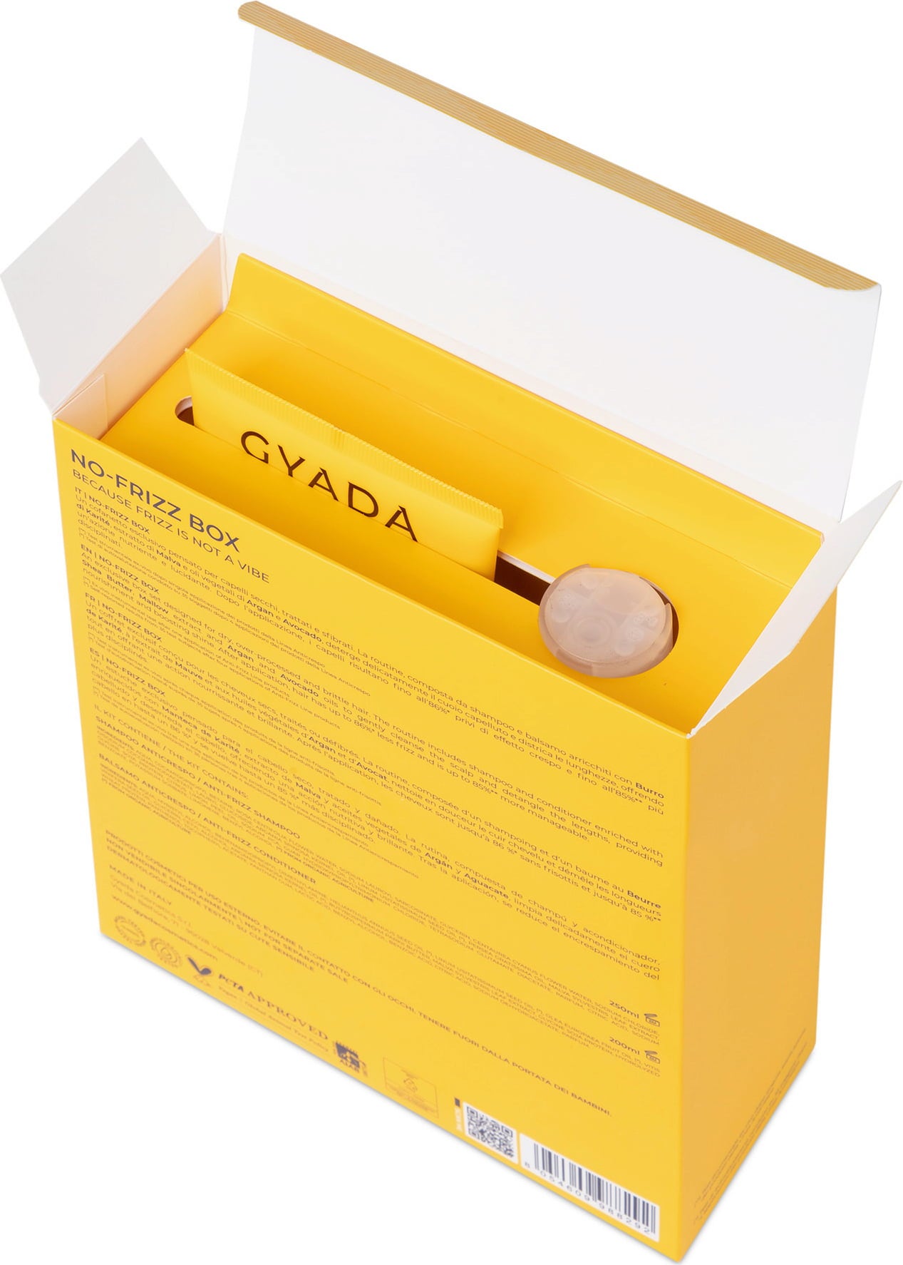 Готовата за подарък и ексклузивна кутия No-Frizz съдържа дуо за грижа за суха, увредена и склонна към накъсване коса. Състои се от шампоан и балсам, обогатени с масло от ший, екстракт от слез и масла от арган и авокадо, които нежно почистват скалпа, разплитат косата, подхранват я и ѝ придават блясък.