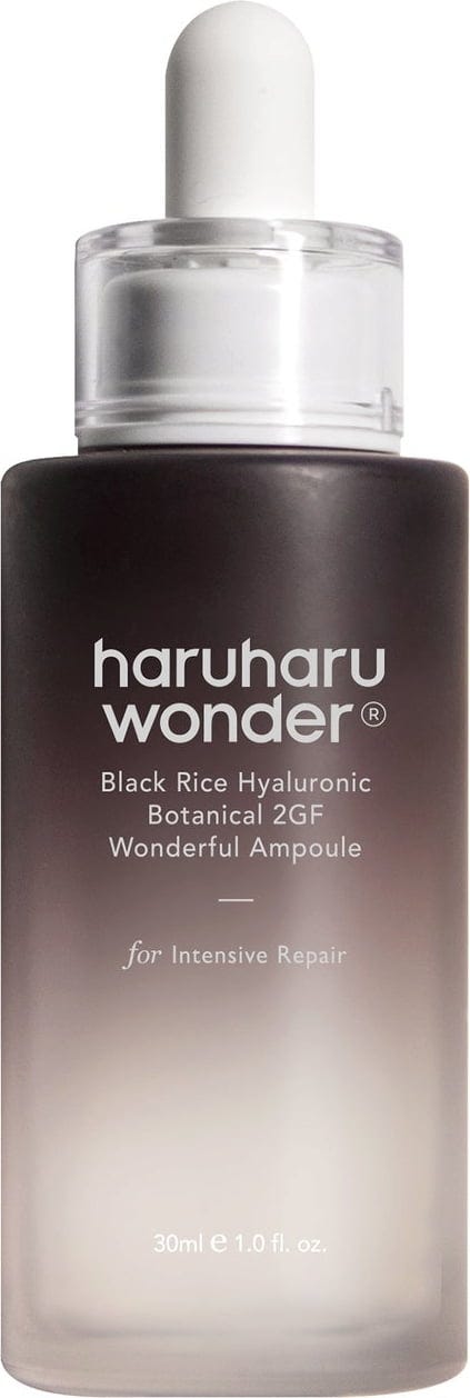 Black Rice Botanical 2GF Wonderful Ampoule на HaruHaru Wonder е силно концентрирана ампула против стареене, която интензивно овлажнява кожата и подпомага регенерацията ѝ. Ферментиралият черен ориз и мощните сигнални протеини насърчават регенерацията на клетките, изглаждат структурата на кожата и придават видимо по-млад и сияен вид. Аденозинът намалява появата на фини линии, а хиалуроновата киселина изпълва кожата и осигурява дълготрайна хидратация.