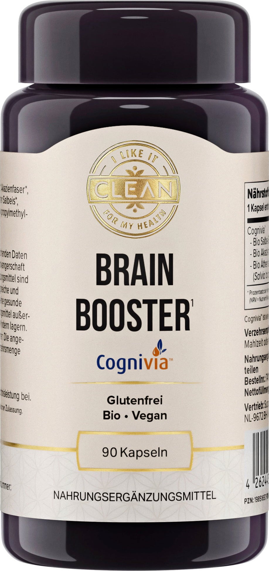 Brain Booster от i like it clean комбинира висококачествен екстракт от салвия с акациеви фибри и етерично масло от испанска салвия – в уникалната, научно изпитана формула Cognivia™. Разработен за дни, в които си натоварен – без кофеин или изкуствени добавки.