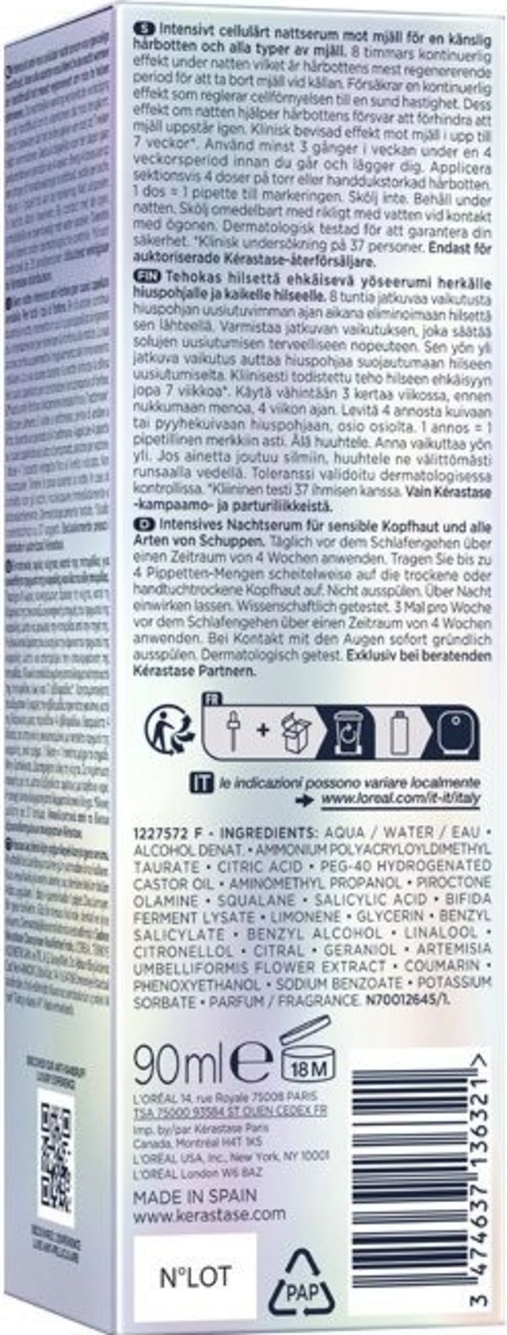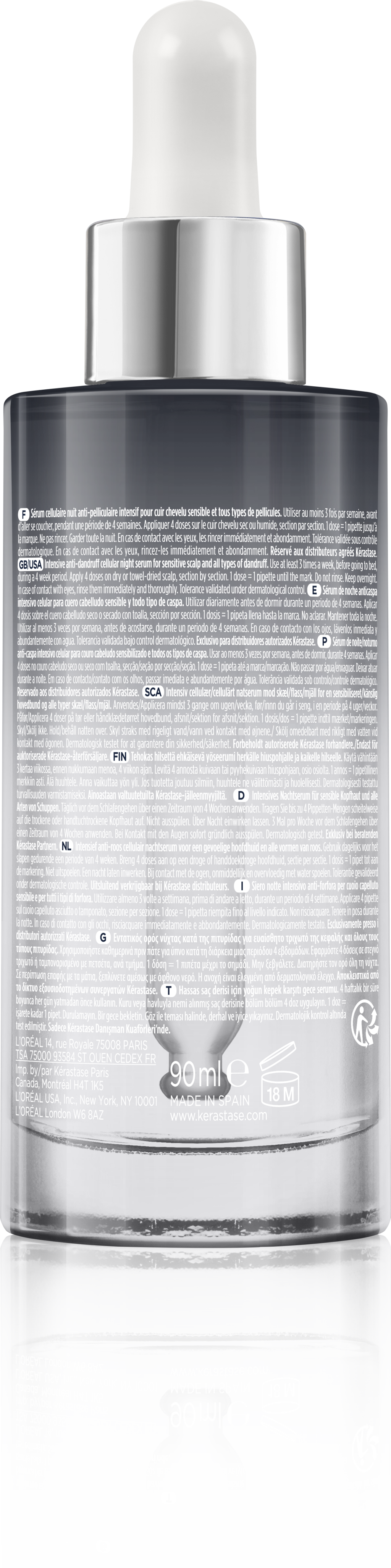 Symbiose Sérum Cellulaire Nuit от Kérastase се грижи за чувствителния скалп, склонен към пърхот, през нощта.