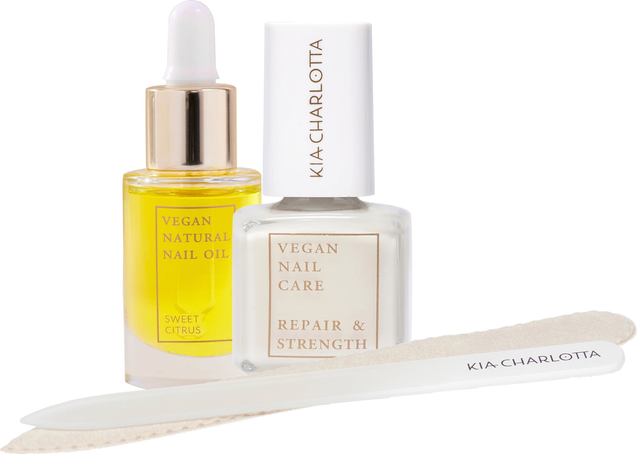 Комплектът Santa's Nail Care X-Mas от Kia-Charlotta предлага всичко необходимо за добре поддържани и бляскави нокти. Комбинацията от подхранващ втвърдител за нокти, подхранващо олио за нокти и висококачествена пила за нокти осигурява перфектен маникюр. Опакован в кутия с красив дизайн, този комплект е идеалната идея за подарък за вашите близки или като малко удоволствие за вас самите.
