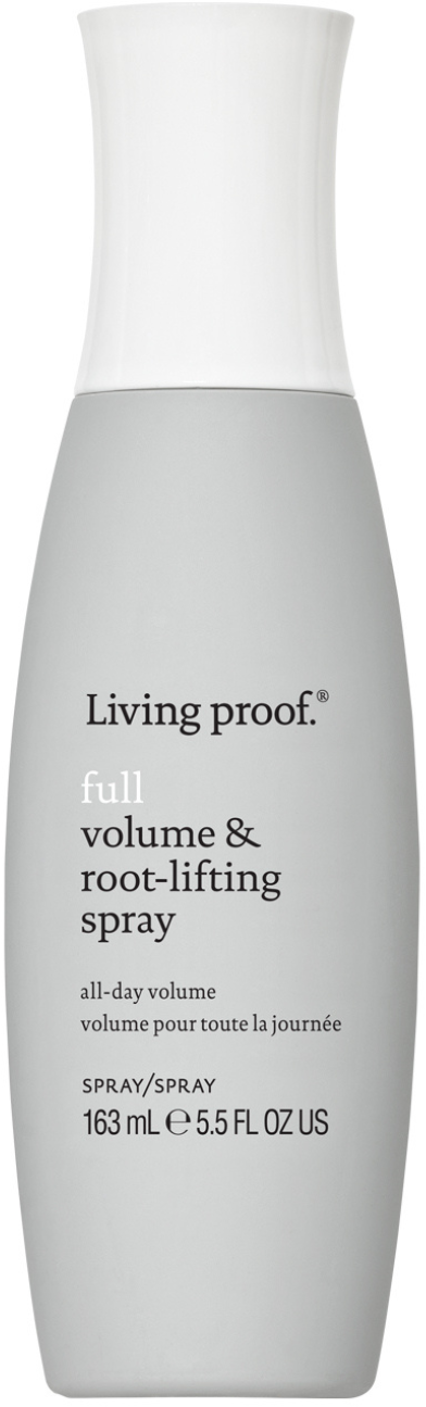 Full Volume & Root-Lifting Spray от Living Proof осигурява леко фиксиране и стилизиране през целия ден. Придава естествен блясък и осигурява дълготраен обем в корените, както и еластичност по дължините. Освен това спреят предпазва косата от топлина до 232 °C.