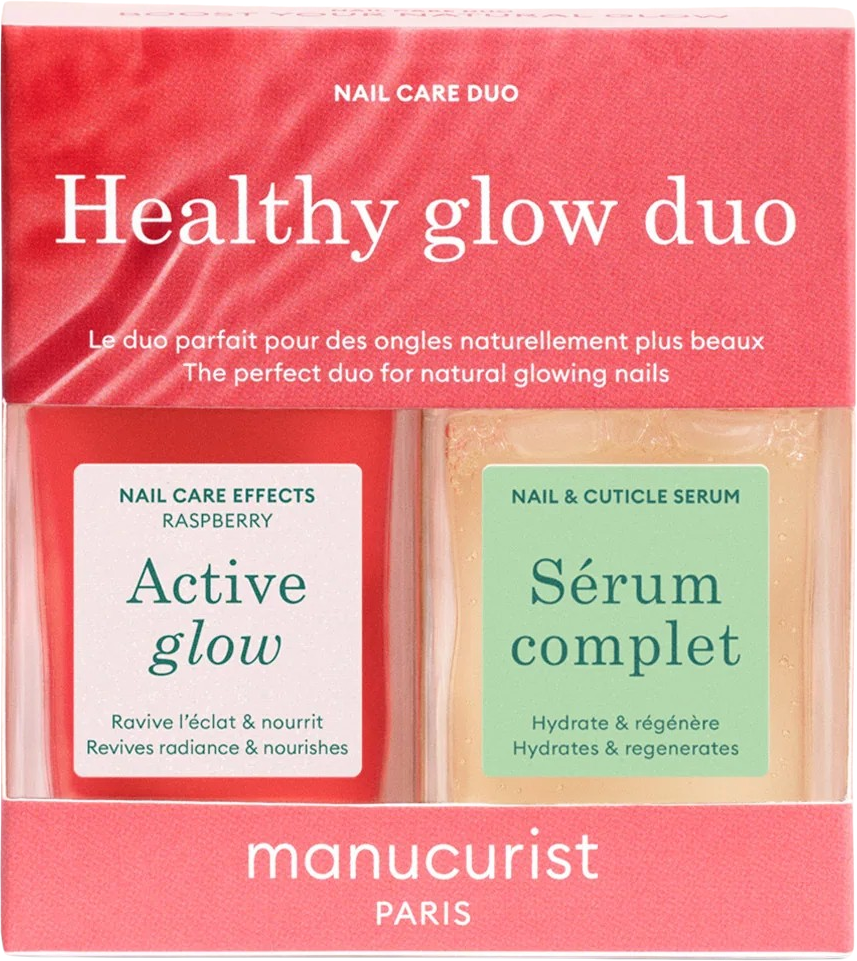 Healthy Glow Duo от Manucurist е перфектната комбинация за сияен маникюр и интензивно подхранени ръце. С Active Glow придавате на ноктите мигновен boost на блясъка в нежно розово, докато Complete Serum осигурява дълбока хидратация, без да лепне. Тази рутина подпомага регенерацията на ноктите и ги прави ден след ден по-силни и визуално по-съвършени. Формулите залагат на растителни съставки и съзнателно избягват спорни добавки, за да подчертаят естествената ви красота. Едновременно с това дуото действа успокояващо върху натоварените кожички и устойчиво защитава маникюра. Открийте лесно treatment изживяване, което впечатлява със своята лекота и кара ноктите да засияят в нова светлина.