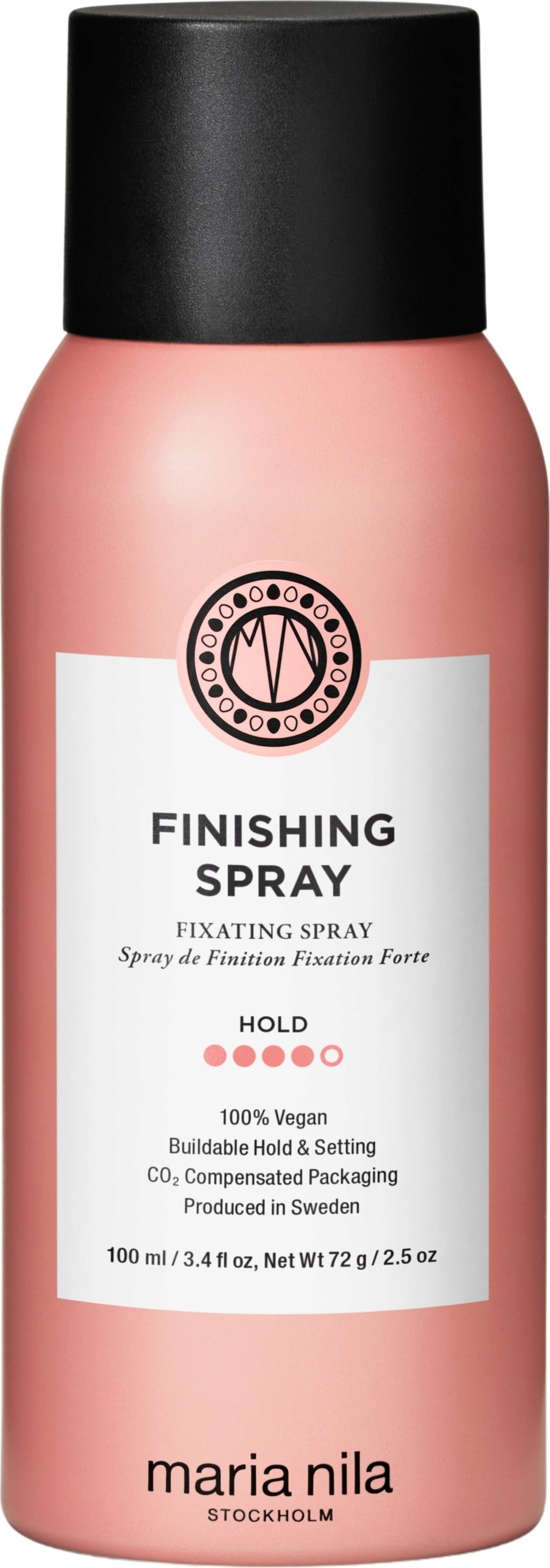 Финиширащият спрей от Maria Nila гарантира много силна фиксация (4/5), но въпреки това се разресва лесно. Той е идеален за стилизиране на къдрици, както и за кокове, и съдържа специалния Colour Guard Complex. Този комплекс предпазва косата от UV лъчи и свободни радикали, като осигурява дълготраен и сияен цвят.