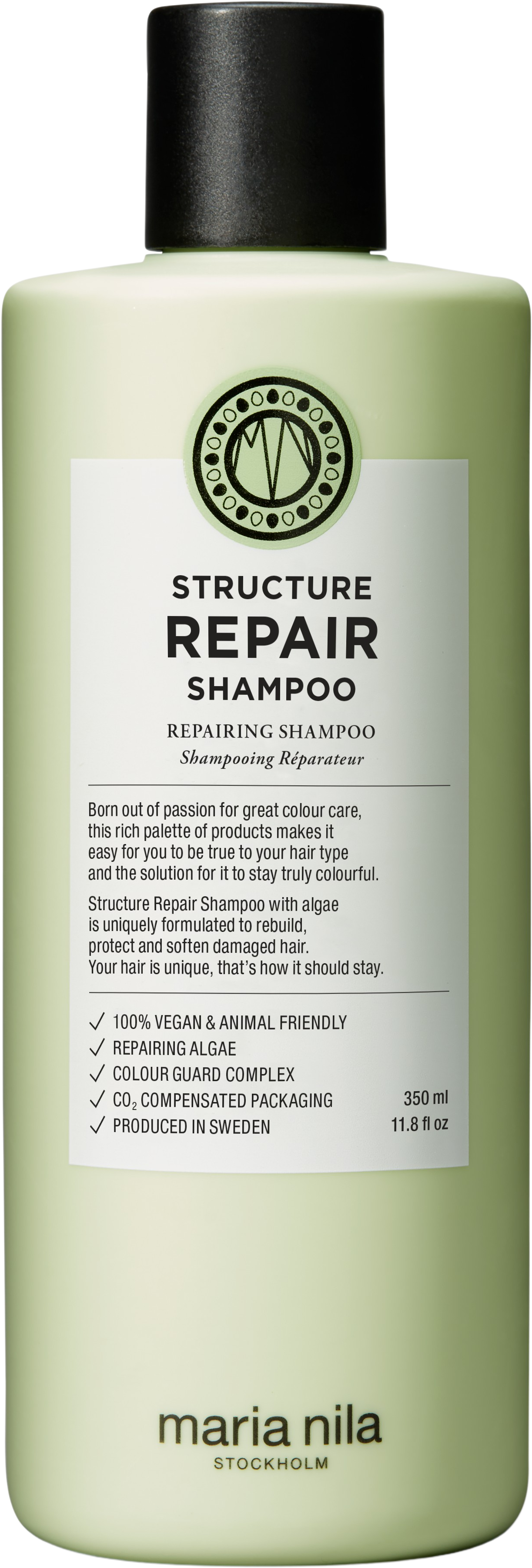 Structure Repair Shampoo от Maria Nila е специално създаден за увредена, суха и химически третирана коса. Той предоставя интензивна хидратация и укрепва структурата на косъма, така че косата ви да изглежда отново поддържана и здрава. Ремонтният екстракт от водорасли придава също така мекота и блясък, докато фирменият Colour Guard Complex предпазва от UV-лъчи и подпомага защитата на цвета.
