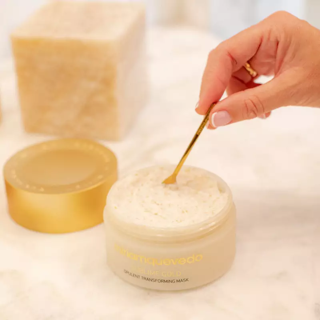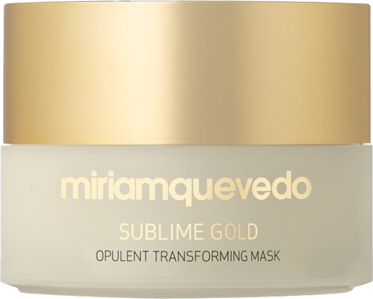 Ексклузивната маска Sublime Gold Opulent Transforming Mask от Miriam Quevedo предлага изключителна и иновативна формула, обогатена с уникална концентрация от три вида 24-каратово злато: биоактивно, микронизирано и злато на люспи. Това предпазва от признаци на стареене, придава на косата великолепен блясък и оптимизира бионаличността на активните съставки за оптимално усвояване. Обогатена с микролипиди от стволовите клетки на дива маслина, витамин D нектар, масло от лайка и Multi-Bond-Filler, маската укрепва и регенерира косата отвътре. Освен това ефективно защитава косъма и скалпа от оксидативен стрес, придава изключителна светлина и възстановява естествената красота на косата.