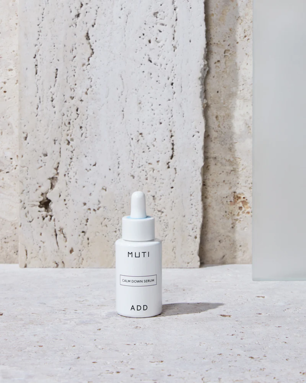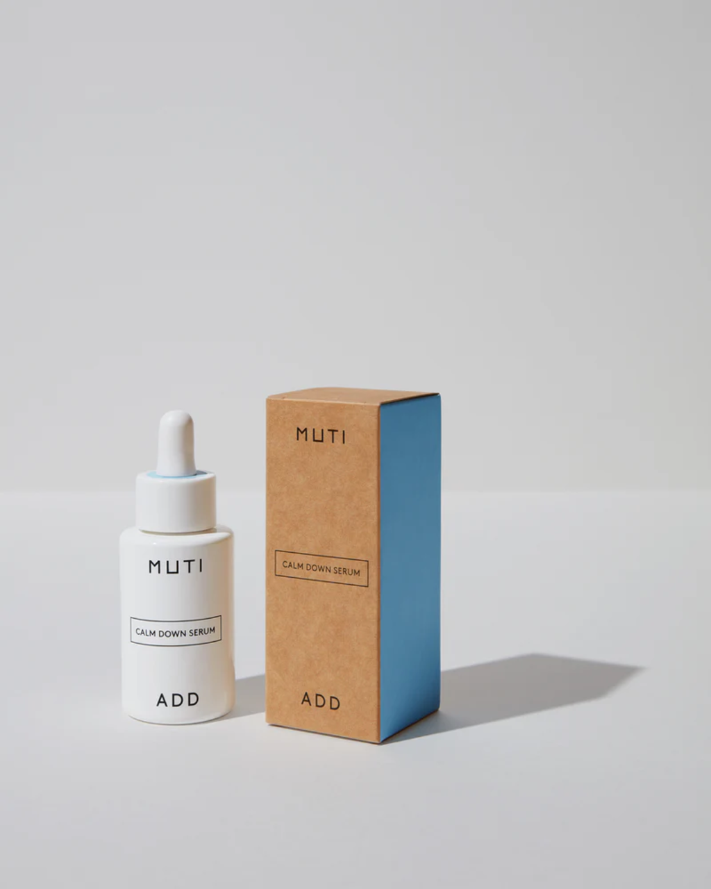 Когато сте под стрес, това се отразява и на кожата ви. Натискът от работата, труден изпит или просто недостиг на сън, както и влияния от околната среда като UV-лъчи, колебания в температурите или климатизация, могат да предизвикат проблеми на кожата. Calm Down Serum от MUTI предлага перфектна подкрепа, като минимизира дразнението и чувството на напрежение и намалява нивото на стрес. Серумът се основава на растителен синергичен ефект от тропическа тръстика и витални гъби Poria Cocos, както и серамиди и антиоксиданти. Кадифената текстура също така бързо се абсорбира и се старае да подобри моментално устойчивостта на кожата.