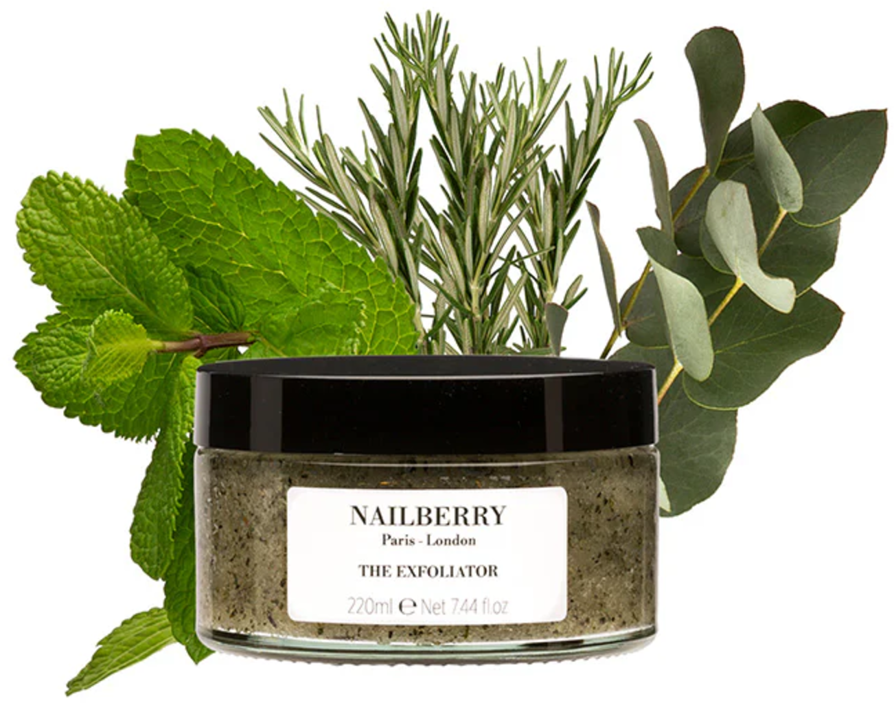 The Exfoliator на Nailberry ви подарява изключително гладка, мека и сияйна кожа. Благодарение на нежната текстура гел-към-мляко, приложението също става истинско удоволствие. Нежните пилинг частици са съставени от фино смлян захар, който премахва мъртвите кожни клетки и прави особено грубите зони отново гладки. Олиото от слънчоглед и сусам прониква дълбоко в кожата и осигурява хранителни вещества и влага. Не се учудвайте на освежаващия, охлаждащ ефект. Той идва от съдържащите се био листа от мента и ободрява уморените, изтощени ръце и крака. Благодарение на етеричните масла от био евкалипт и розмарин, вашите сетива също се наслаждават на ободряващия аромат.