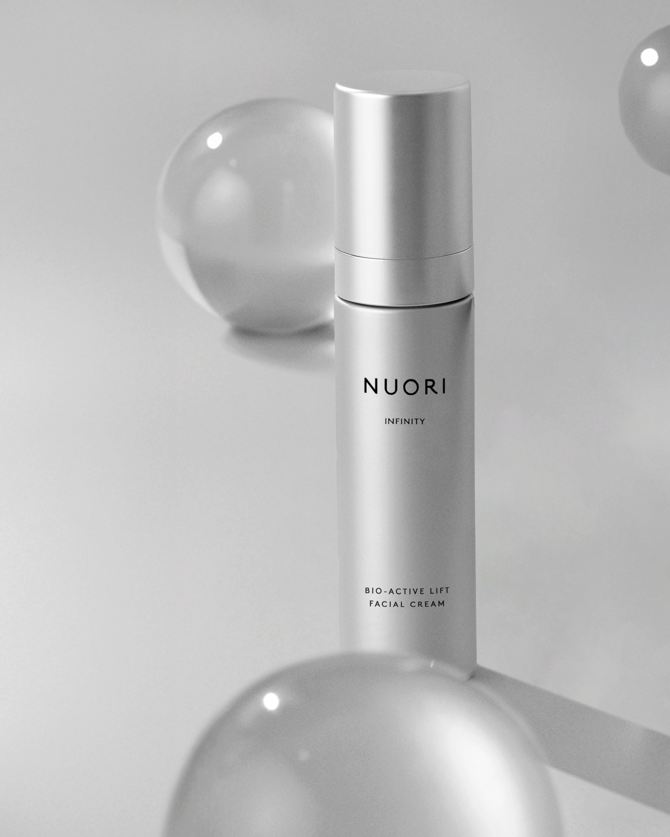 Infinity Bio-Active Lift Facial Cream от NUORI има видимо стягаща, уплътняваща и изглаждаща формула с биоактивни съставки като Cruox®, CO₂llageneer® Bio и Novhyal® Biotech G. Тя стимулира естествения синтез на колаген и еластин в кожата, осигурявайки лифтинг ефект и намалявайки дълбочината на бръчките, без да нарушава естествената защитна бариера. Така се подобрява еластичността и устойчивостта на кожата, която отново възвръща своя блясък.