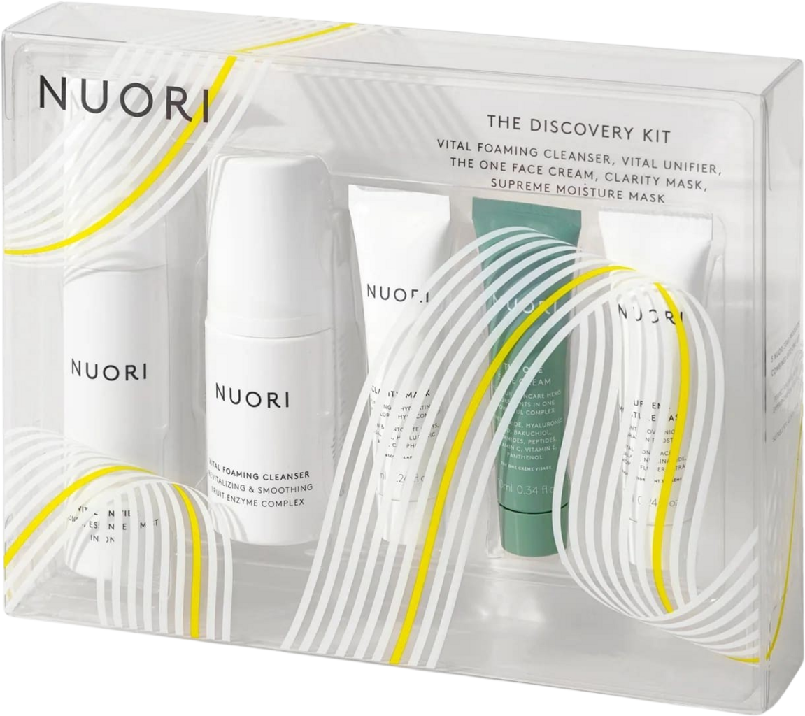 В този Discovery Kit ще откриете петте най-продавани продукта на NUORI в един пакет. Подходящ е за всички типове кожа и покрива нуждите за вашата рутинна грижа за лицето. Освен това, комплектът е перфектен като идея за подарък, за пътуване или за опознаване.