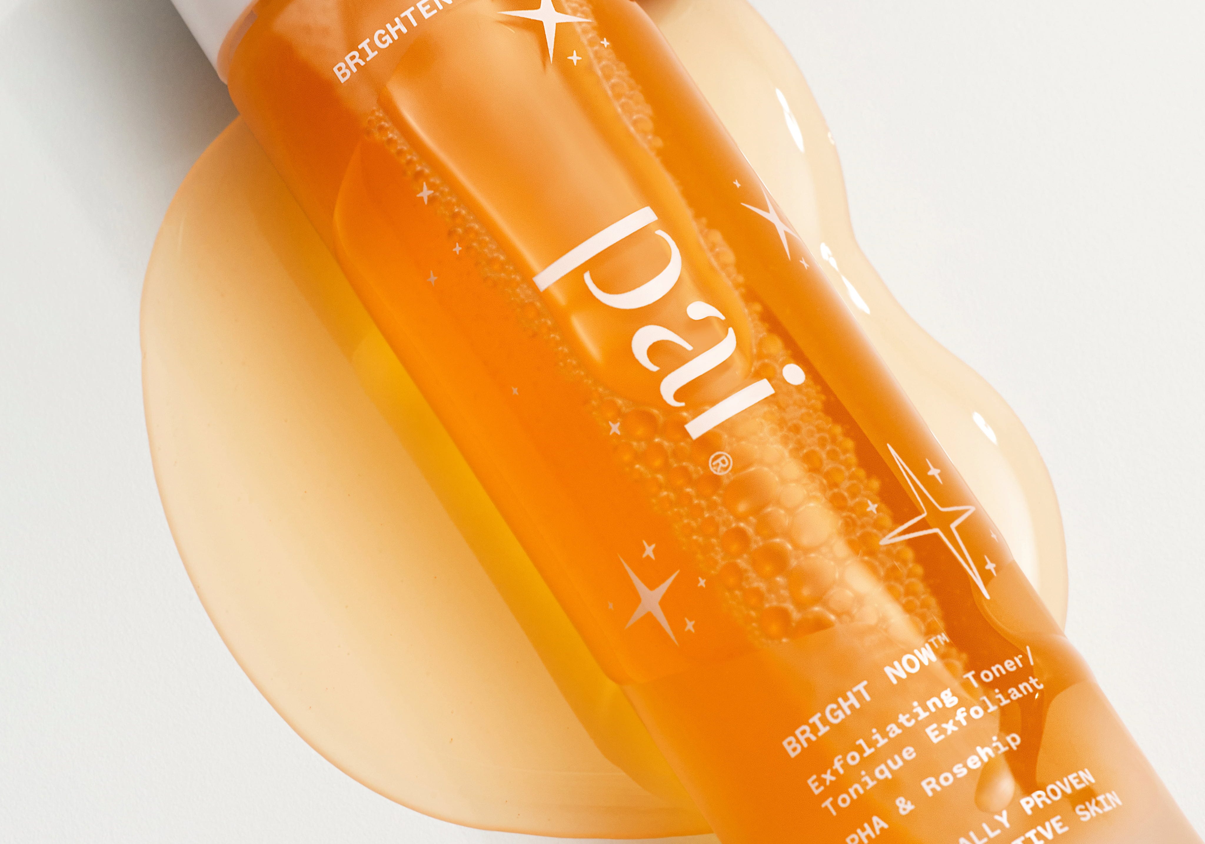 Ексфолиращият тоник Bright Now PHA & Rosehip на Pai Skincare е уникален киселинен ексфолиант, който комбинира полихидрокси киселини (PHA) с натурален ниацинамид и екстракт от шипка, за да ексфолира нежно дори най-чувствителната кожа, да изглади тена и да минимизира появата на пори. Формулата е нежна и не съдържа алкохол, тонизира, без да изтръпва.