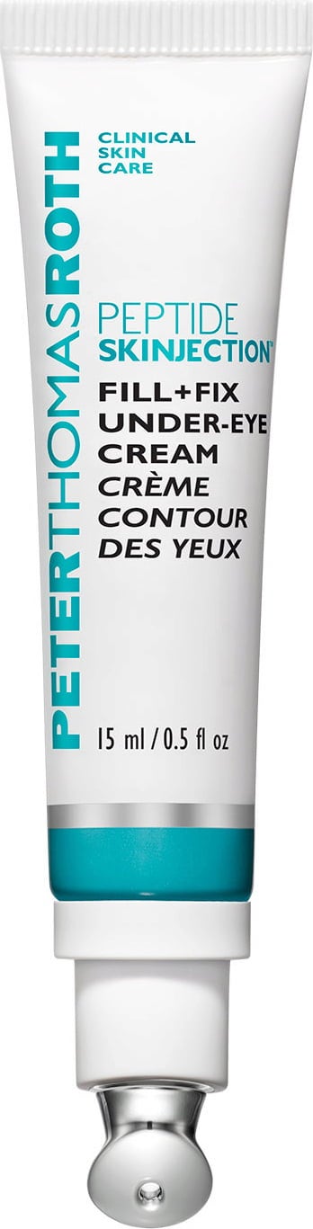 Peptide Skinjection™ Fill + Fix Under-Eye Cream от Peter Thomas Roth е неинвазивен околоочен крем, който предлага ефект на попълване без игли и спомага за минимизиране на тъмни кръгове, тъмни зони и фини линии. Благодарение на 4% Peptilift пептидната технология, 3% Juveneye CLR™ и хиалуроновите сфери, формулата осигурява по-стегнат, лифтиран и сияен изглед на околоочния контур, възстановявайки неговия обем. Обогатен с изсветляващи минерали и кофеин, кремът придава свеж и бодър вид на всички типове кожа.