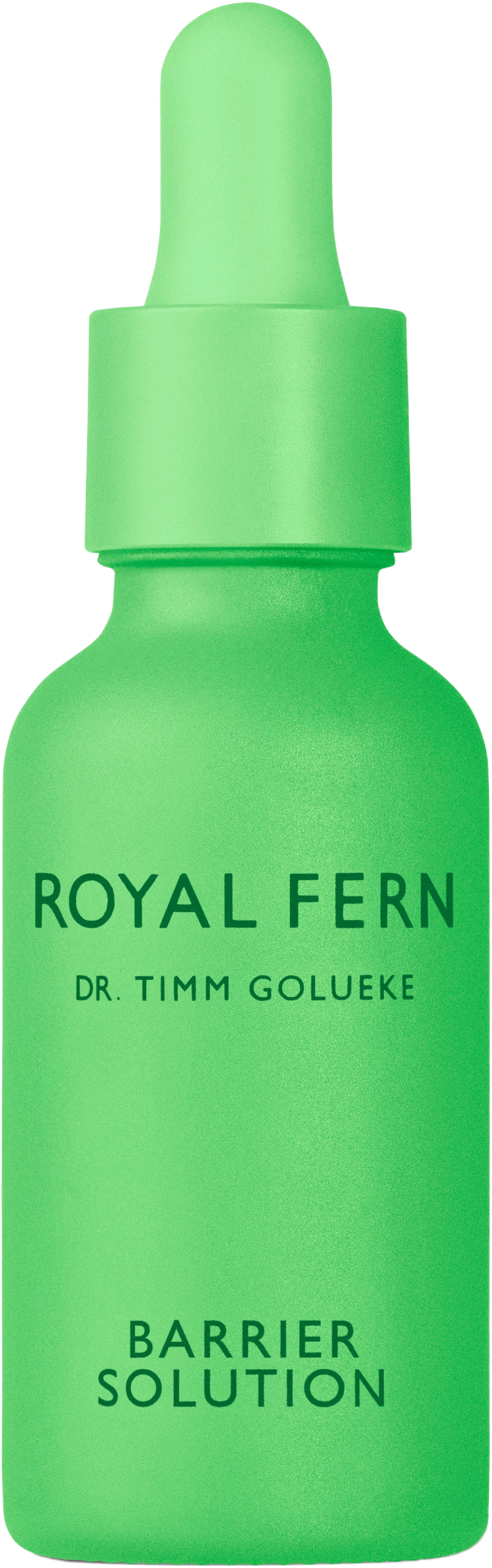 Със серума Barrier Solution на Royal Fern можете да подсилите естествената защитна бариера на кожата си и да ѝ осигурите интензивно овлажняване, еластичност и блясък. Формулата съчетава 3% комплекс от церамиди за подпомагане на бариерната функция с NMF (Natural Moisturising Factor) за дълбока хидратация. Пробиотичният Byfida Ferment Lysate насърчава обновяването на клетките, а патентованият комплекс Royal Fern защитава кожата от свободните радикали и може да намали видимите признаци на стареене.
