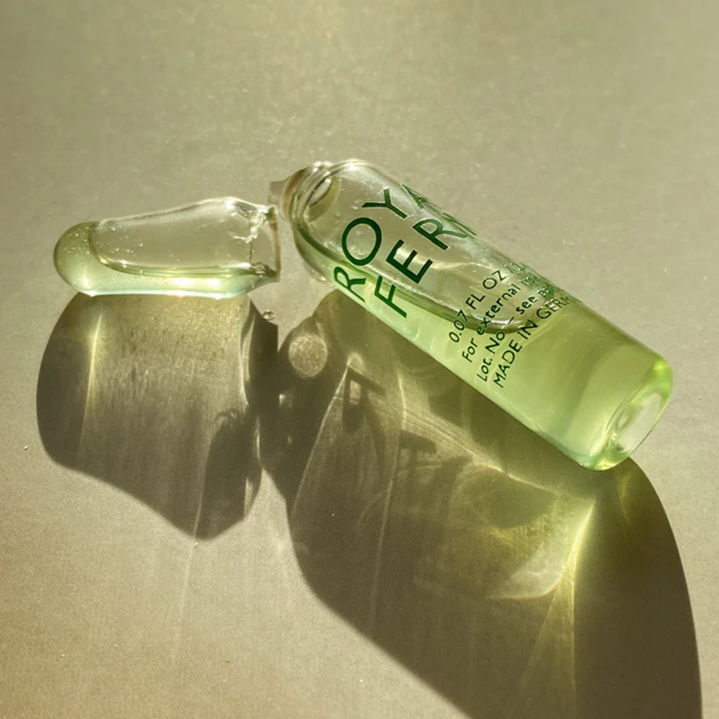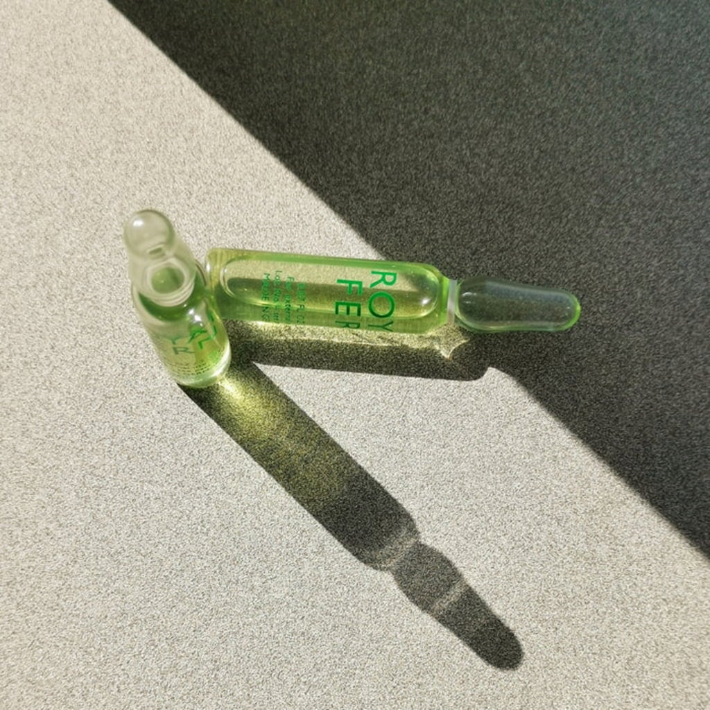 Фитоактивните осветяващи ампули от Royal Fern съдържат високо концентрирани растителни активни вещества, които нежно осветяват кожата и придават изключителен блясък. Това се постига чрез минимизиране на излишното производство на пигменти и стимулиране на синтеза на колаген в кожата. Допълнително, хиалуроновата киселина и ниацинамидът оптимизират влаговия запас на кожата, правейки я видимо по-пълна, гладка и равномерна. Освен това, ампулите предоставят мощен антиоксидантен и възстановителен ефект, възстановявайки клетъчната енергия за поправка на нарушените структури. Насладете се на уникалния незабавен ефект, защото с всяко приложение кожата ви ще изглежда по-сияйна.