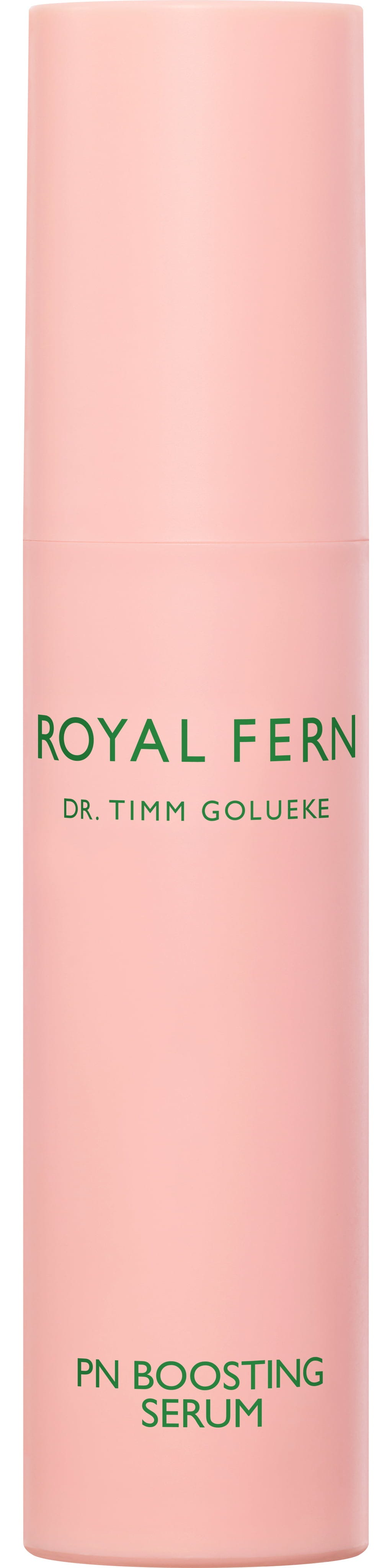 PN Boosting Serum от Royal Fern съчетава съвременни съставки с дерматологична експертиза, за да стимулира оптимално естественото обновяване на кожата. Висококачествените полинуклеотиди подпомагат синтеза на колаген и могат да подобрят еластичността на кожата, както и да намалят видимостта на фините линии и бръчките. Добавянето на био плацента подпомага клетъчната регенерация, а уморената и стресирана кожа възвръща свежия си вид за кратко време. Серумът осигурява интензивна хидратация и ревитализира кожата в дълбочина – за по-младежки и сияен тен.