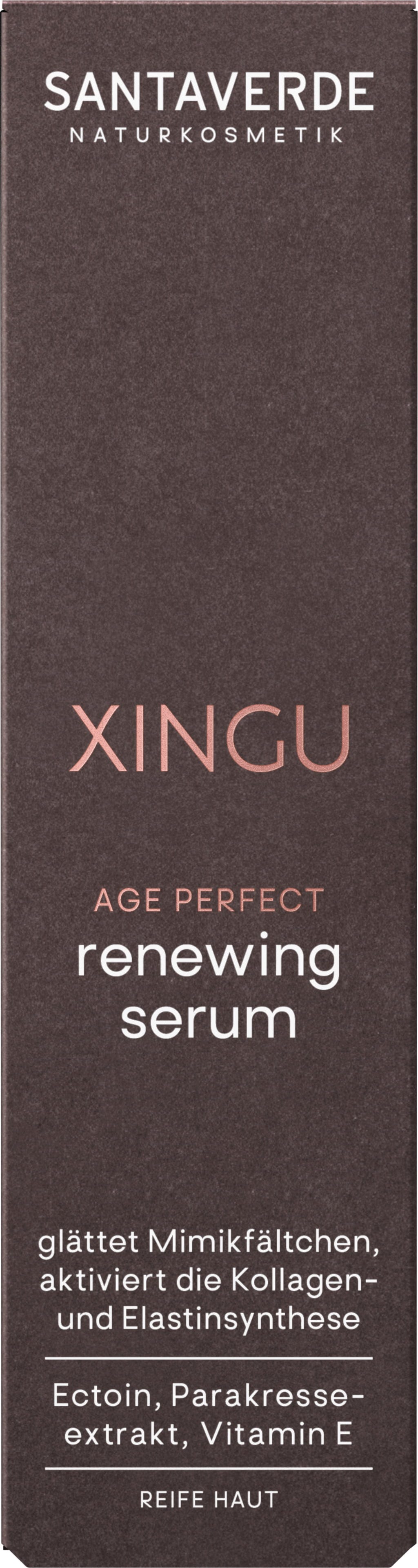 Обновяващ серум XINGU AGE PERFECT е най-активната стъпка в грижата за кожата в линията XINGU. Това е концентриран продукт за допълнителна грижа, който дава нов тласък на зрелите и взискателни типове кожа. Изискани екстракти от тропическите гори, като например масло от паракрес и бурити, са комбинирани в основа от алое вера, за да се създаде продукт за грижа за кожата с фино стареене, който активира и овлажнява кожата. За по-гладка и стегната кожа.